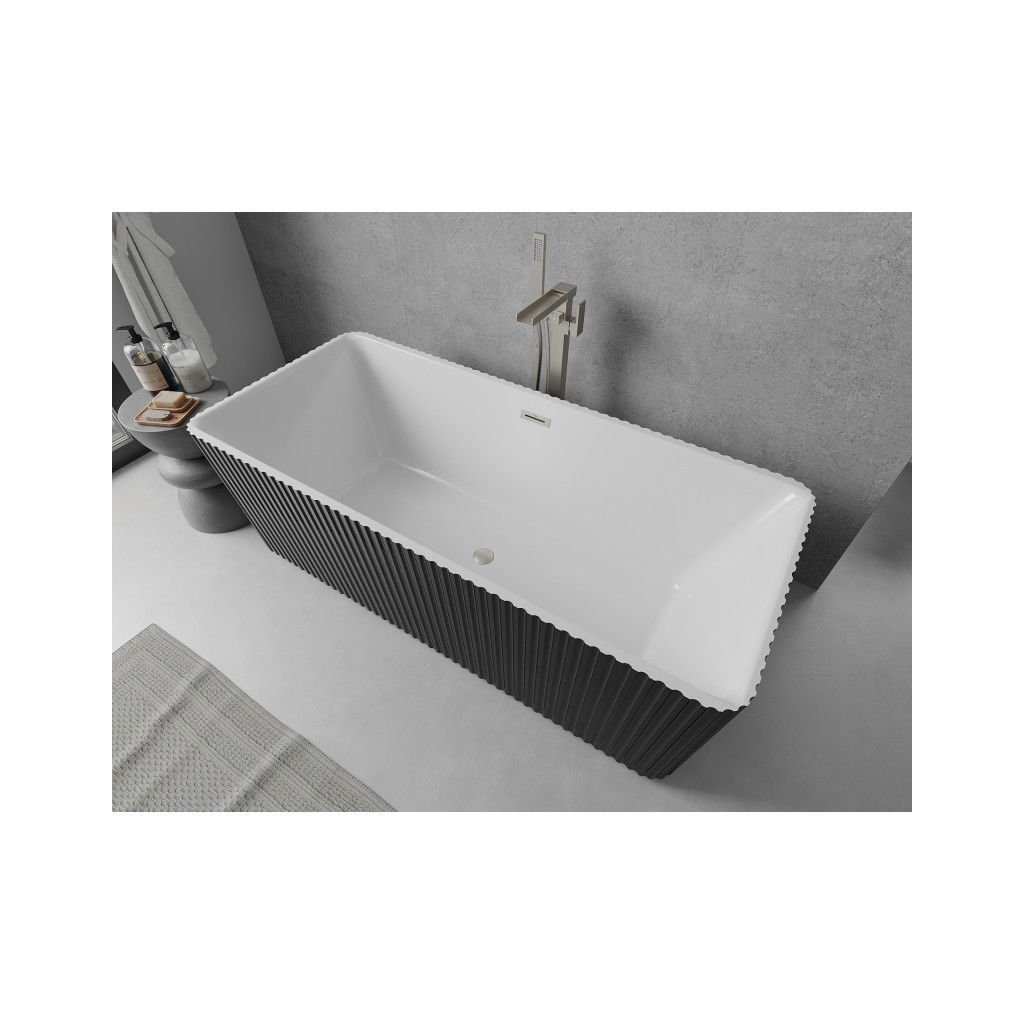 Mexen Nila, volně stojící rýhovaná vana 170 x 75 cm, bílá-černá, ocelový přepad, 52841708075-97