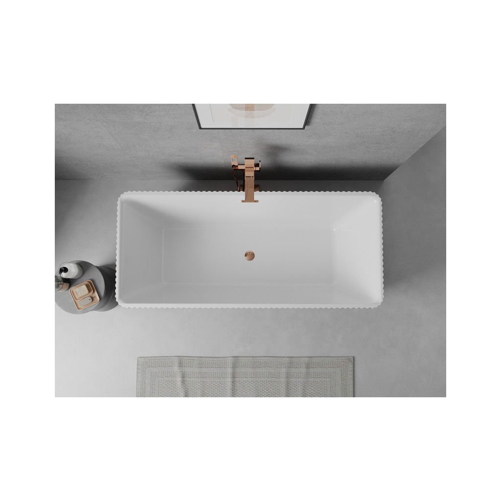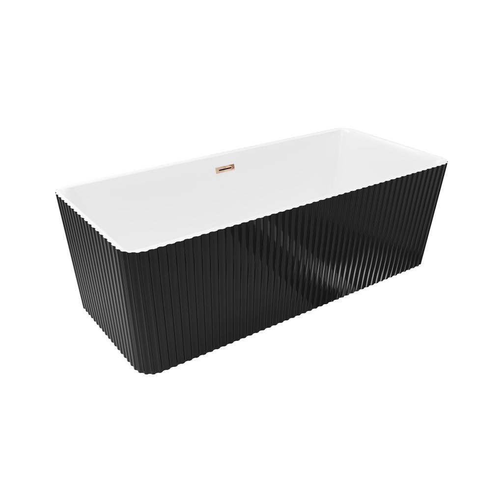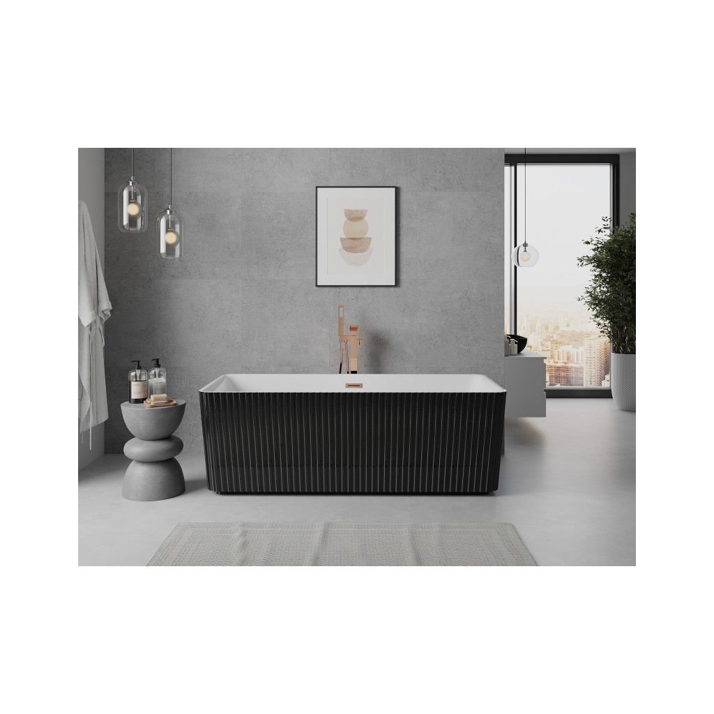 Mexen Nila, volně stojící rýhovaná vana 170 x 75 cm, bílá-černá, růžové zlato přepad, 52841708075-60