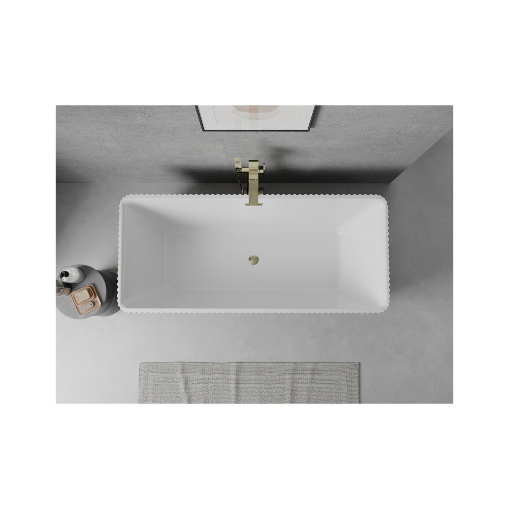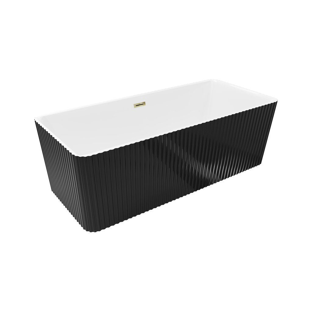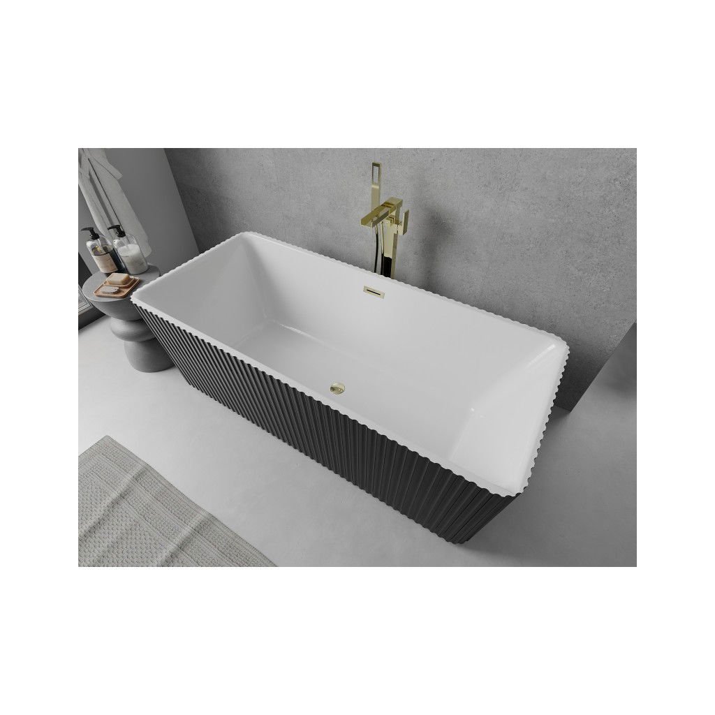 Mexen Nila, volně stojící rýhovaná vana 170 x 75 cm, bílá-černá, zlatý lesklý přepad, 52841708075-50