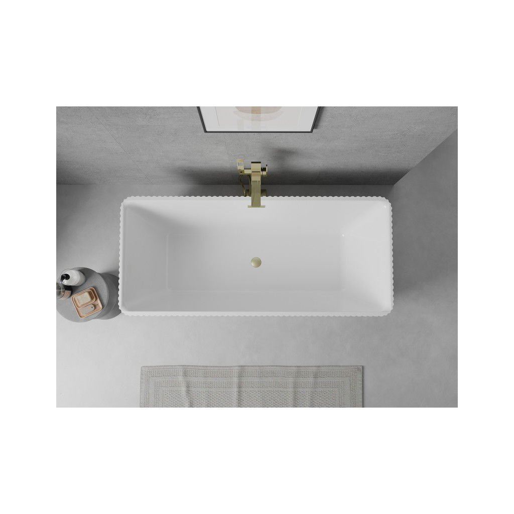 Mexen Nila, volně stojící rýhovaná vana 170 x 75 cm, bílá-černá, zlatý matný přepad, 52841708075-55