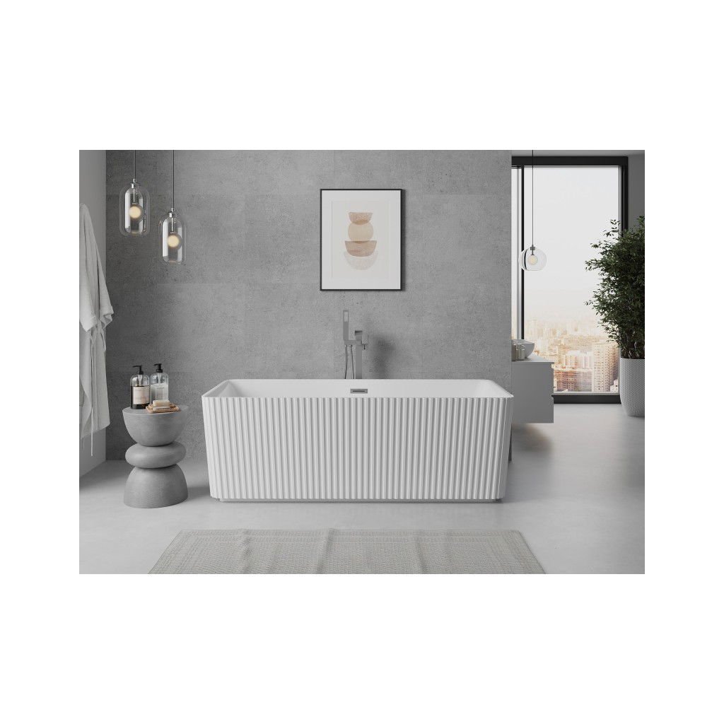Mexen Nila, volně stojící rýhovaná vana 170 x 75 cm, bílá lesklá, grafitový přepad, 52841708000-95