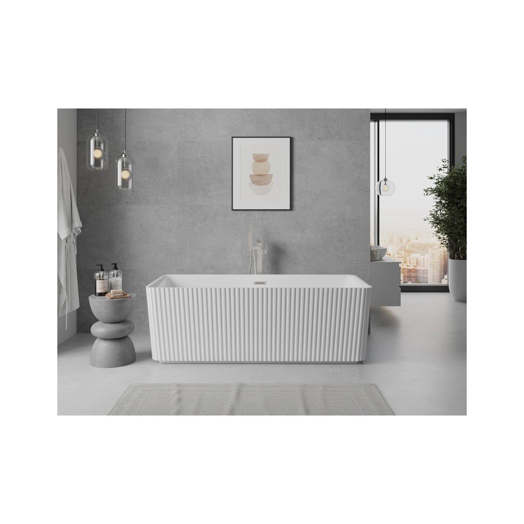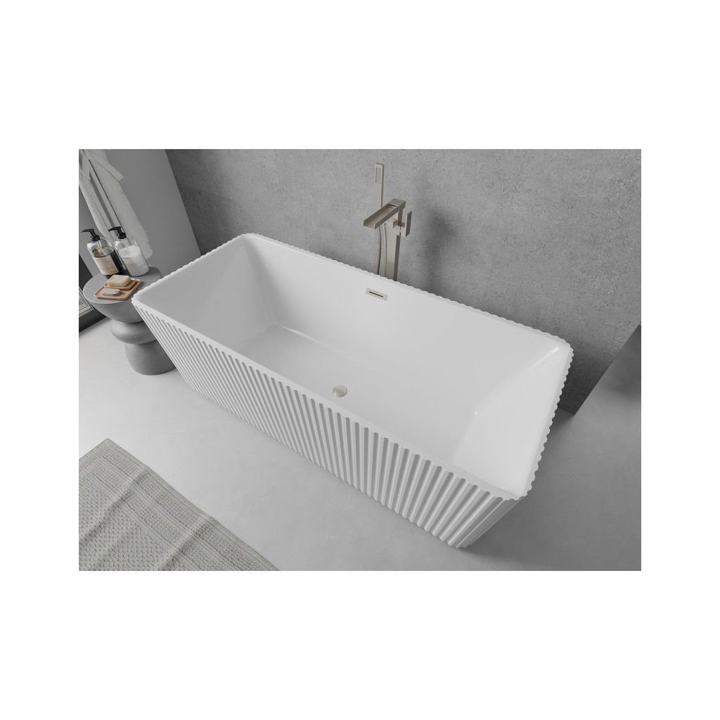 Mexen Nila, volně stojící rýhovaná vana 170 x 75 cm, bílá lesklá, ocelový přepad, 52841708000-97