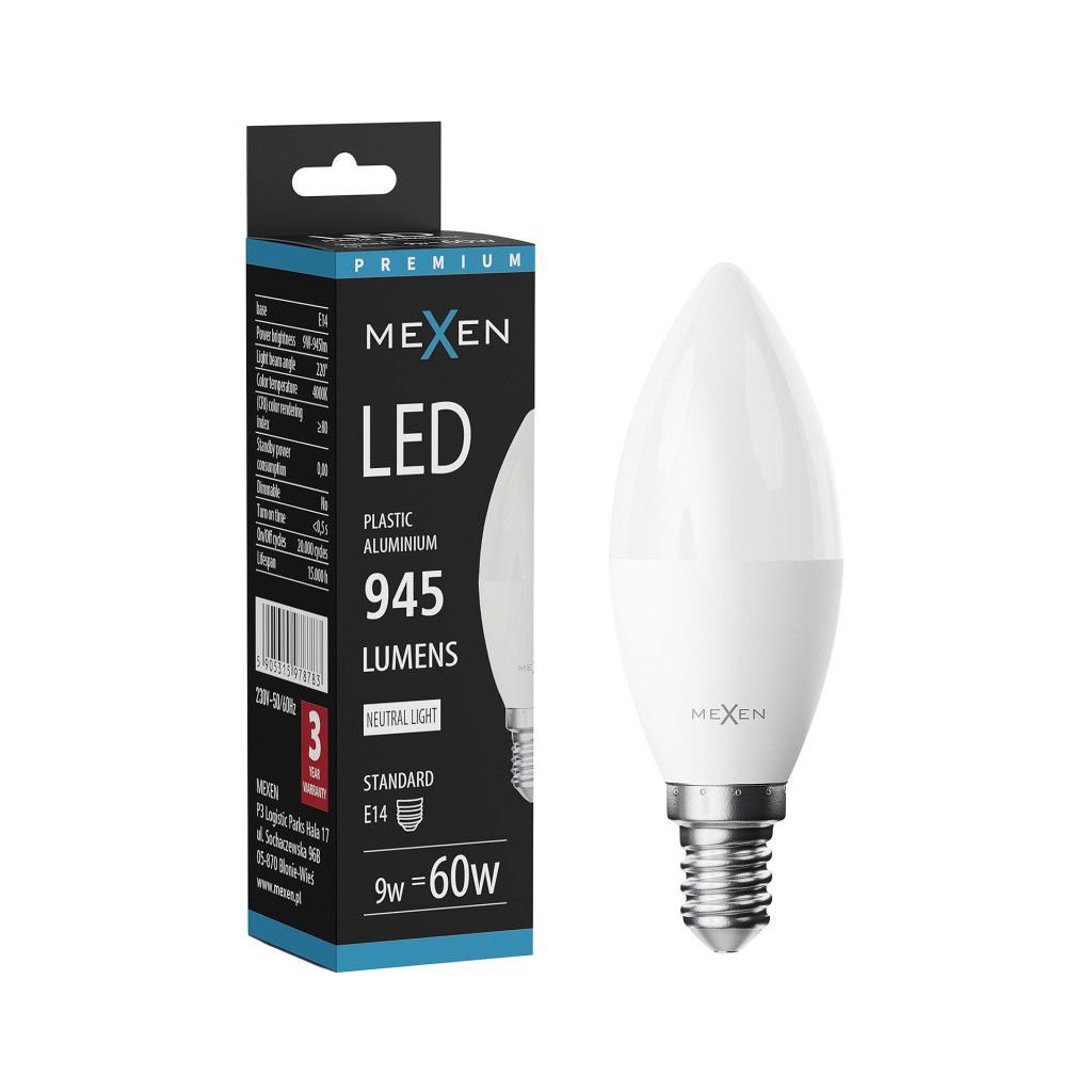 Mexen Nova, LED žárovka E14, C37, 9W, teplá - 3000K, 945 lm - L102-E14-0930-01