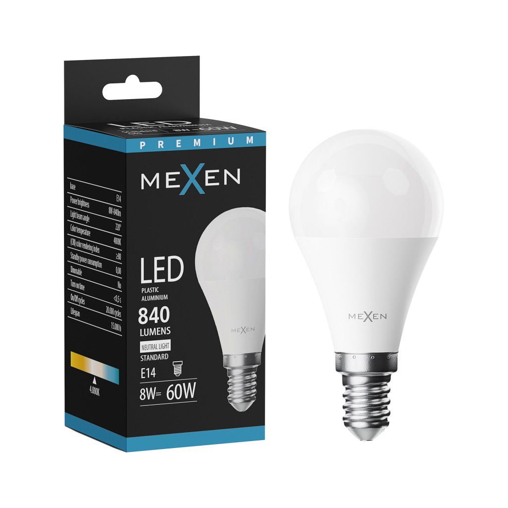 Mexen Nova, LED žárovka E14, G45, 8W, neutrální - 4000K, 840 lm - L101-E14-0840-01
