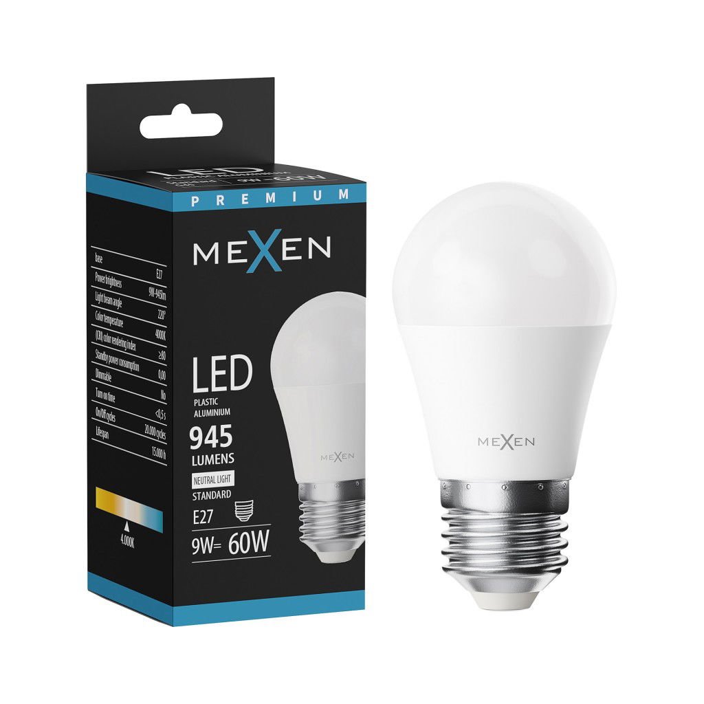 Mexen Nova, LED žárovka E27, G45, 9W, neutrální - 4000K, 945 lm - L101-E27-0940-01