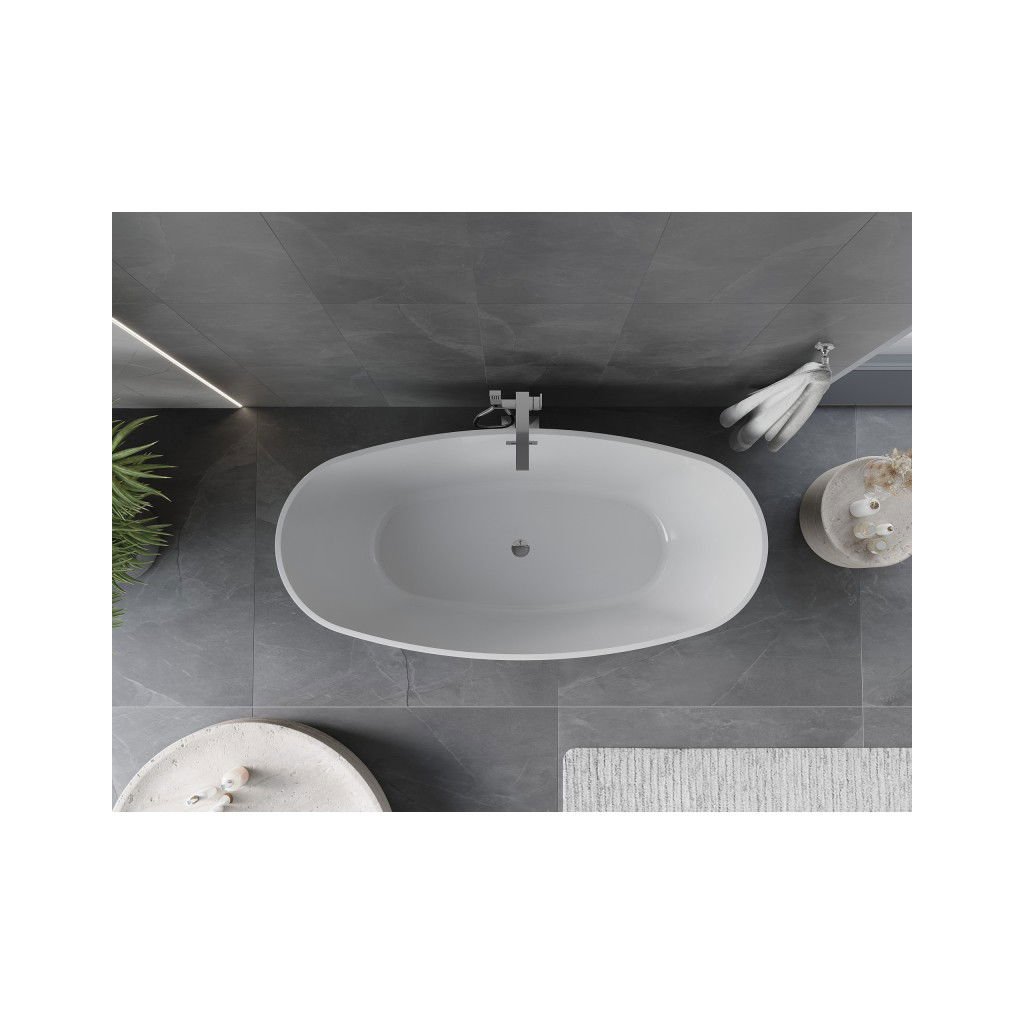 Mexen Olea, volně stojící vana, vzor, 170 × 80 cm, bílá-černá, chromový přepad, 52821708075-01