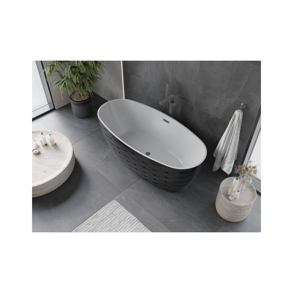 Mexen Olea, volně stojící vana, vzor, 170 × 80 cm, bílá-černá, grafitový přepad, 52821708075-95