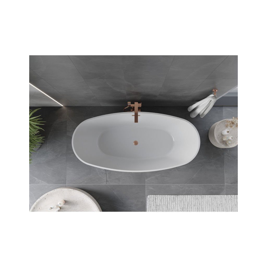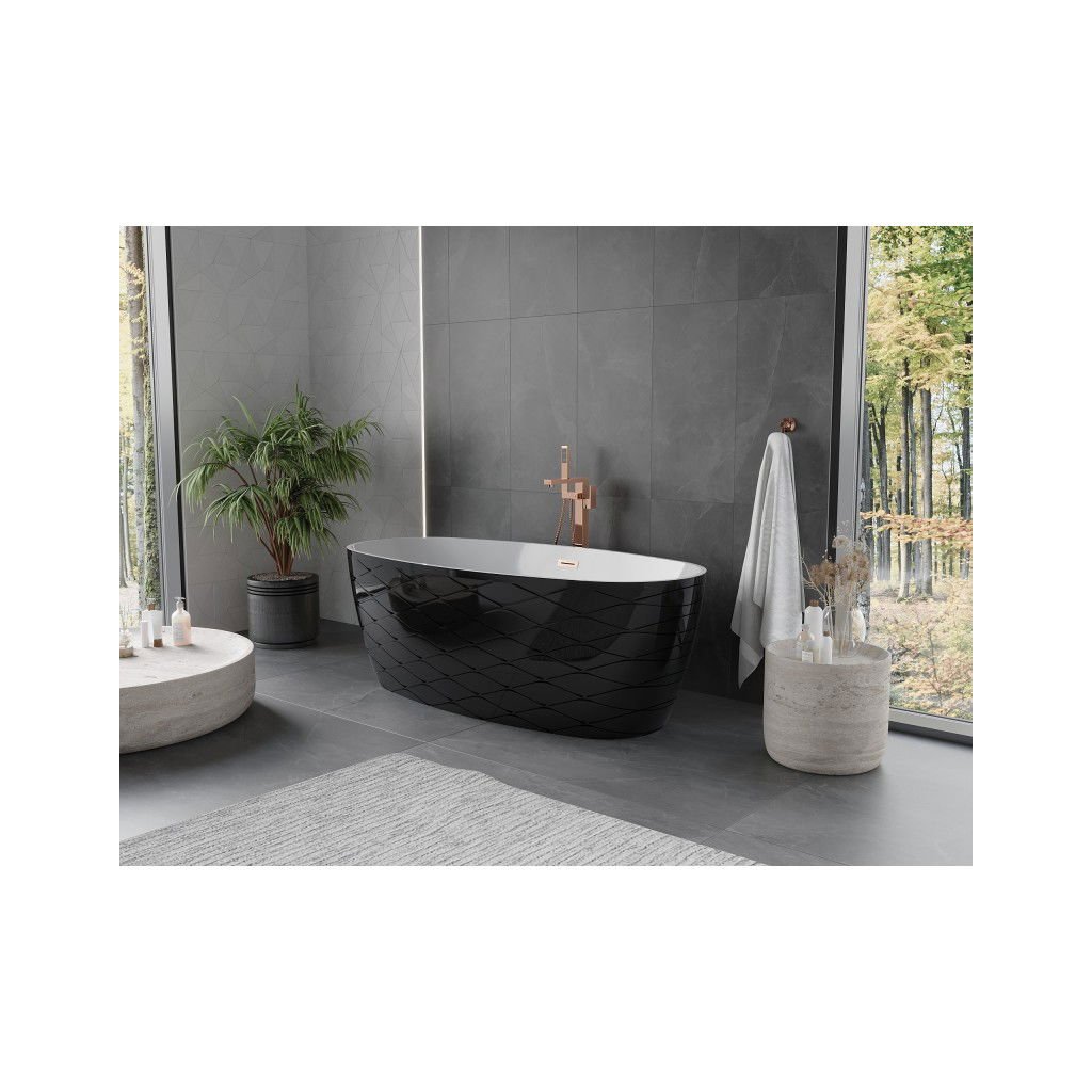 Mexen Olea, volně stojící vana, vzor, 170 × 80 cm, bílá-černá, měděný matný přepad, 52821708075-65