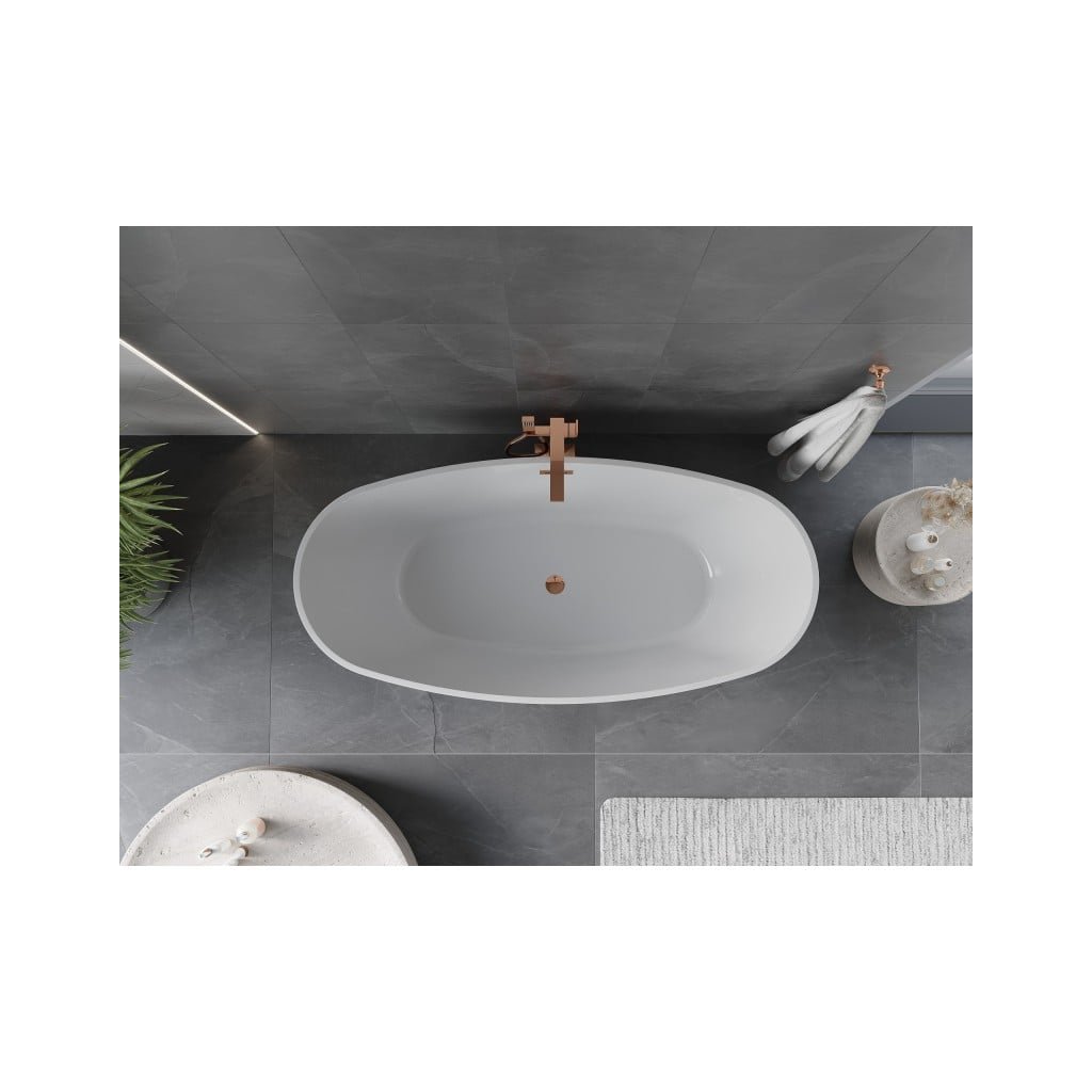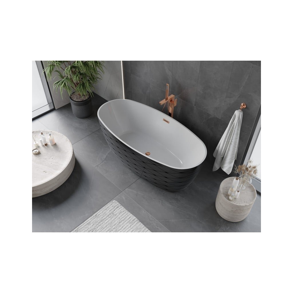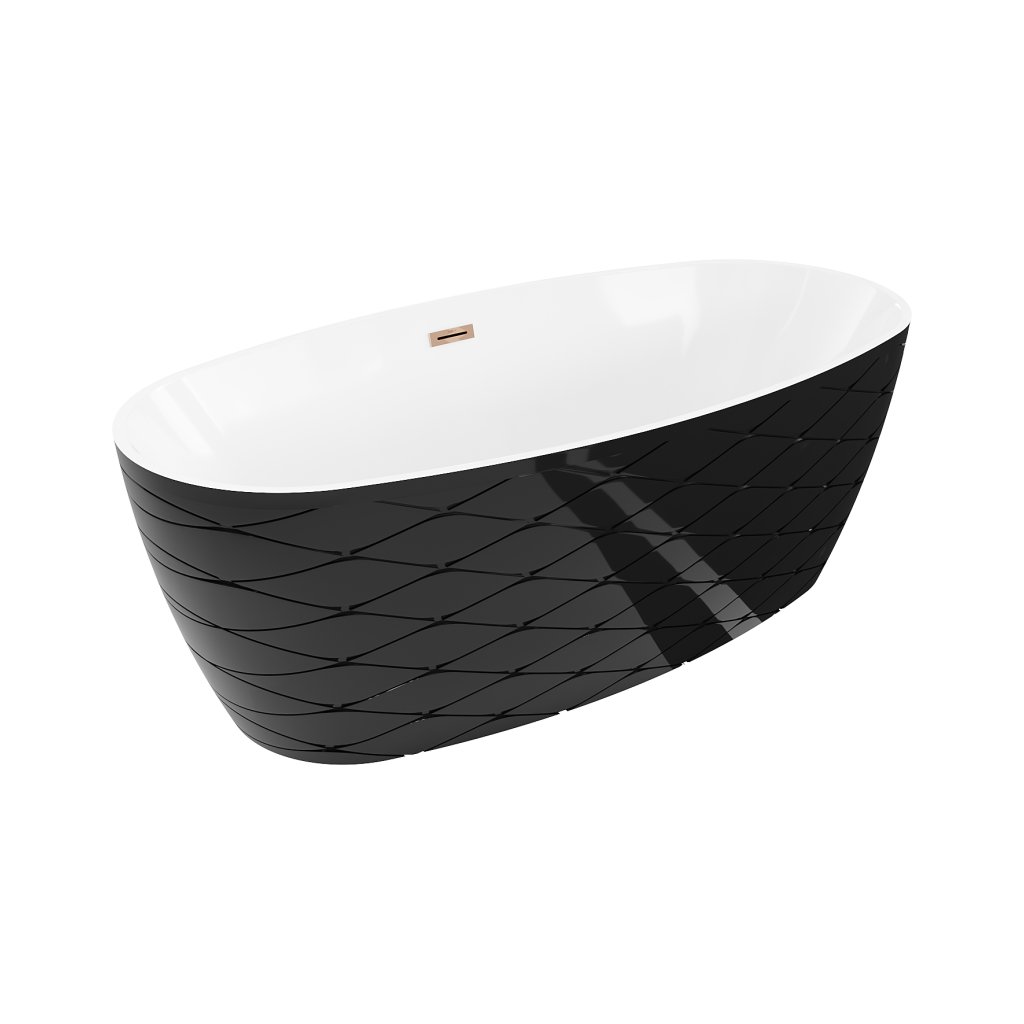 Mexen Olea, volně stojící vana, vzor, 170 × 80 cm, bílá-černá, růžové zlato přepad, 52821708075-60