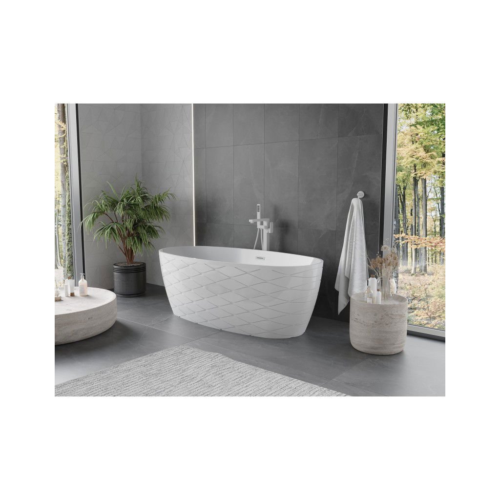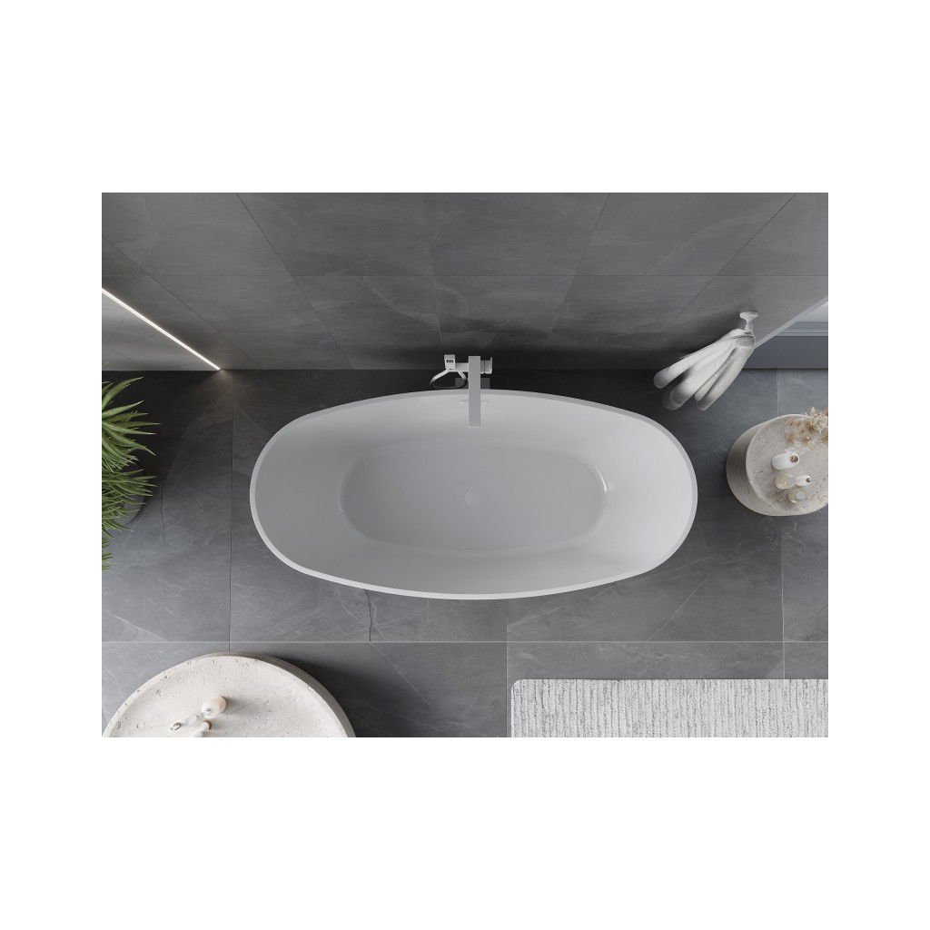 Mexen Olea, volně stojící vana 170 × 80 cm, bílá lesklá, bílý přepad, 52821708000-20