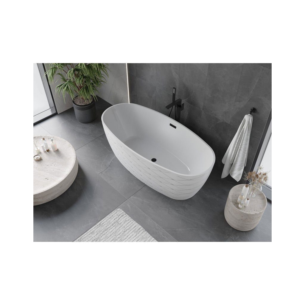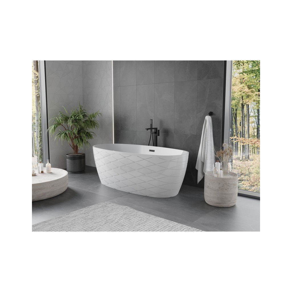 Mexen Olea, volně stojící vana 170 × 80 cm, bílá lesklá, černý přepad, 52821708000-70