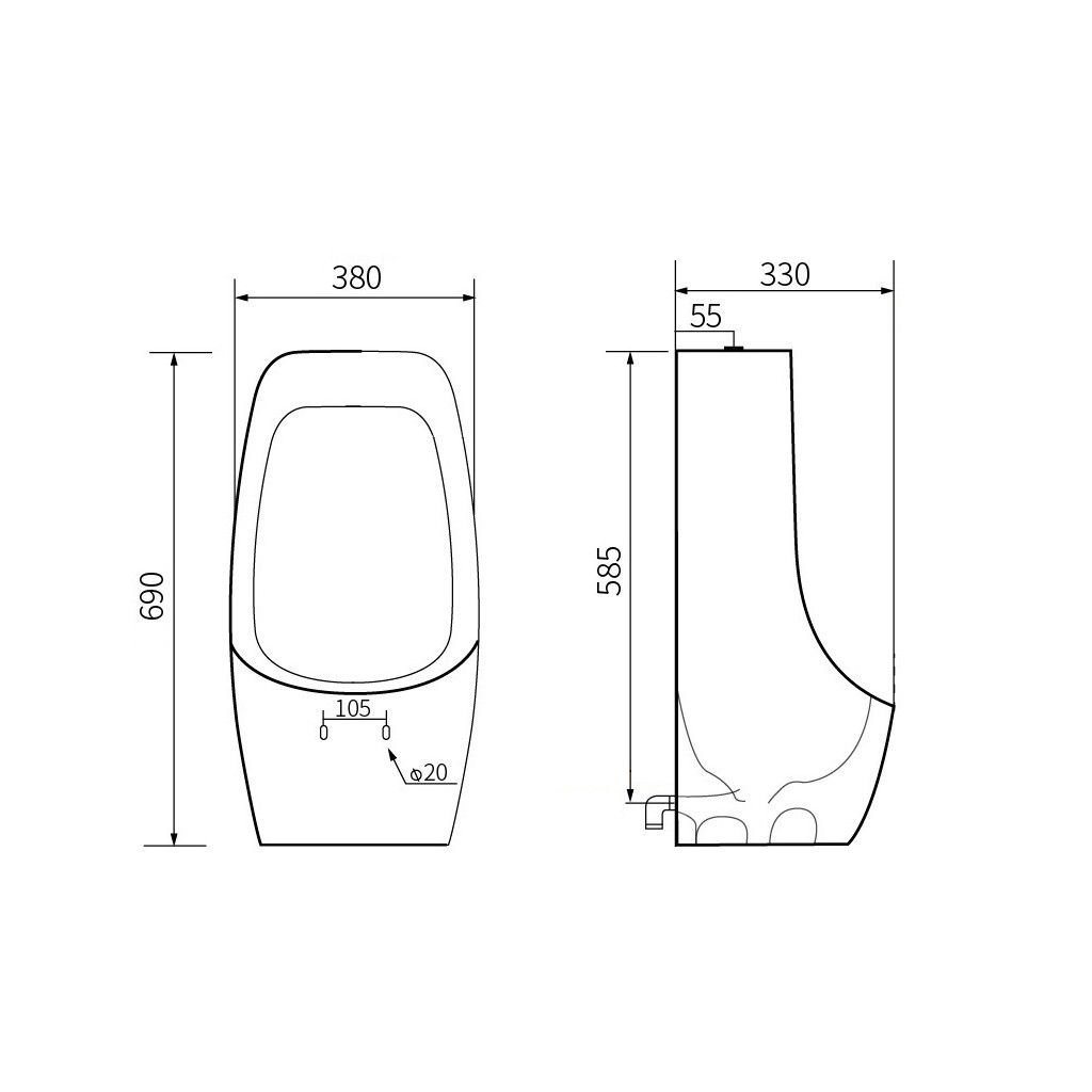 Mexen Oliver, závěsný pisoár 69x38x33 cm, černá matná, 37016970