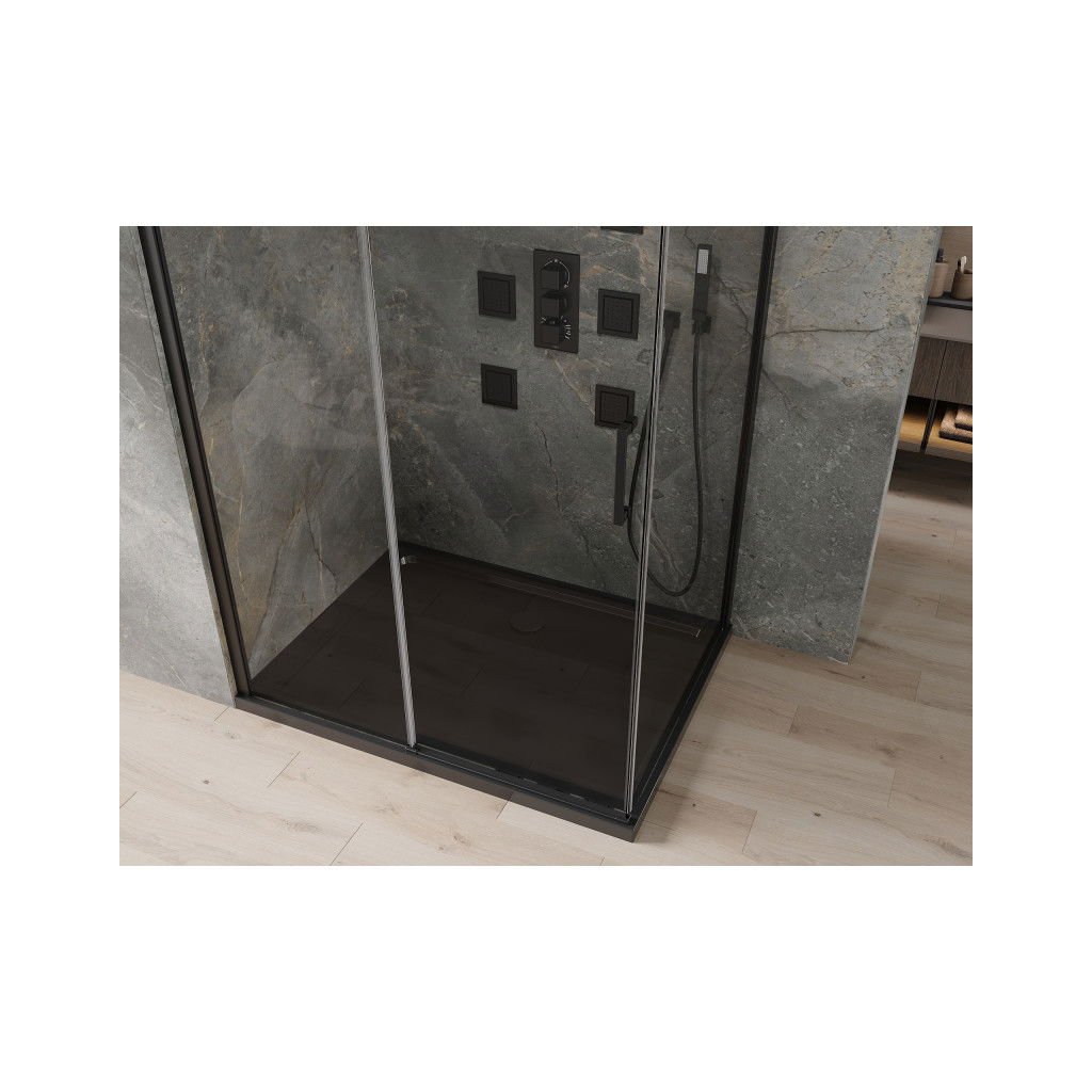 Mexen Omega, sprchový kout s posuvnými dveřmi 100 (dveře) x 80 (stěna) cm, 8mm čiré sklo, černý profil + slim sprchová vanička černá s černým sifonem, 825-100-080-70-00-4070B