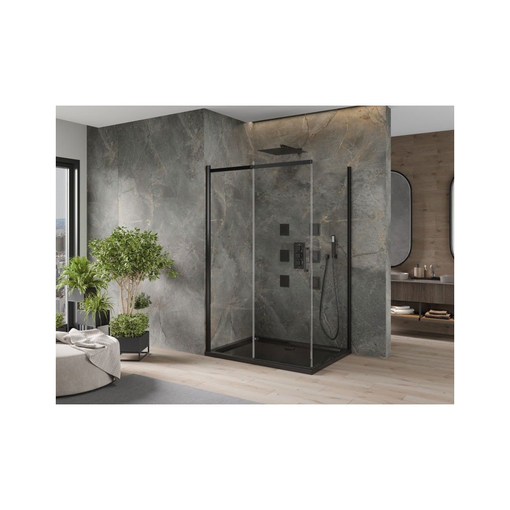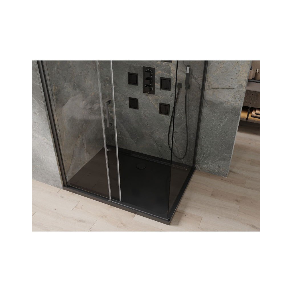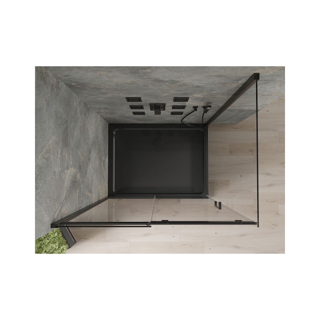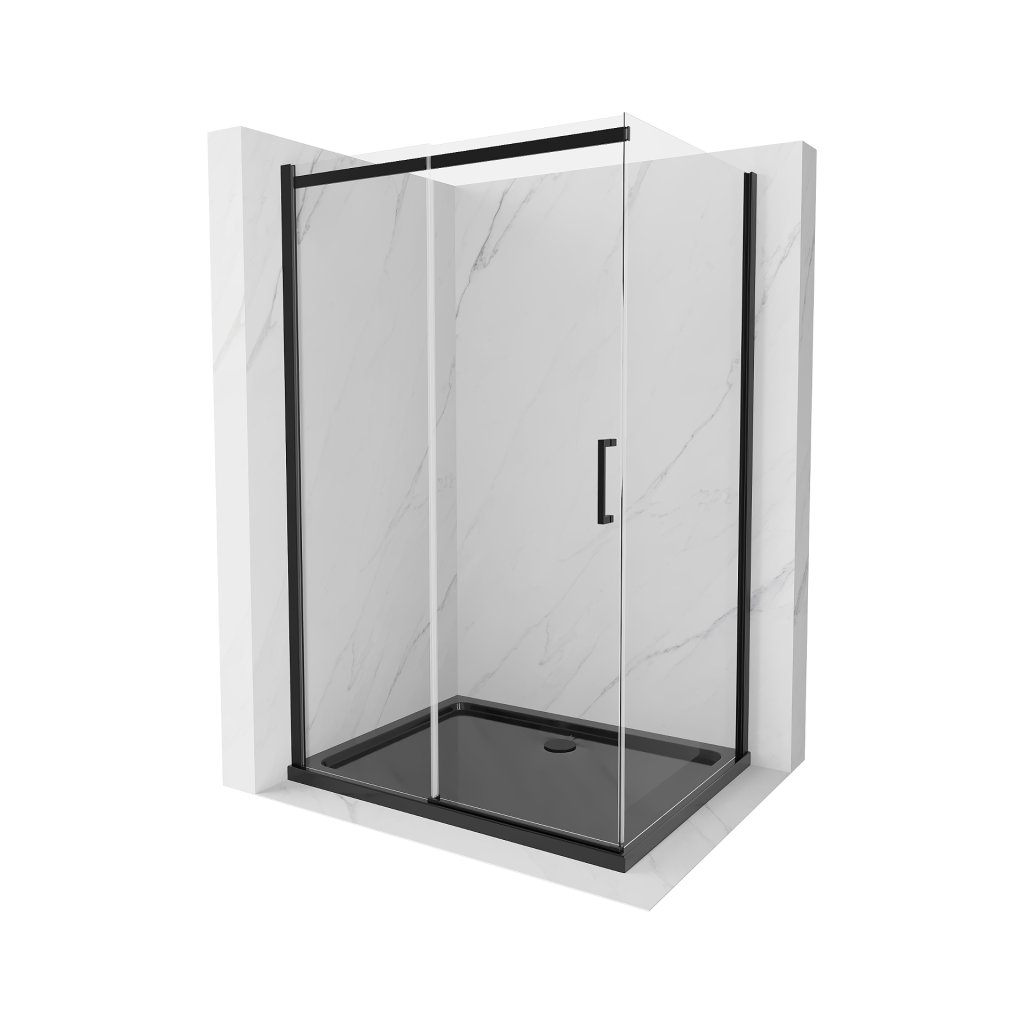 Mexen Omega, sprchový kout s posuvnými dveřmi 120 (dveře) x 90 (stěna) cm, 8mm čiré sklo, černý profil + slim sprchová vanička černá s černým sifonem, 825-120-090-70-00-4070B