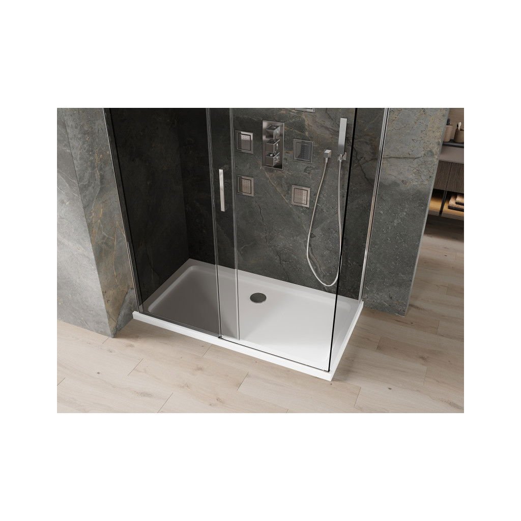 Mexen Omega, sprchový kout s posuvnými dveřmi 140 (dveře) x 80 (stěna) cm, 8mm šedé sklo, chromový profil + slim sprchová vanička bílá + chromový sifon, 825-140-080-01-40-4010