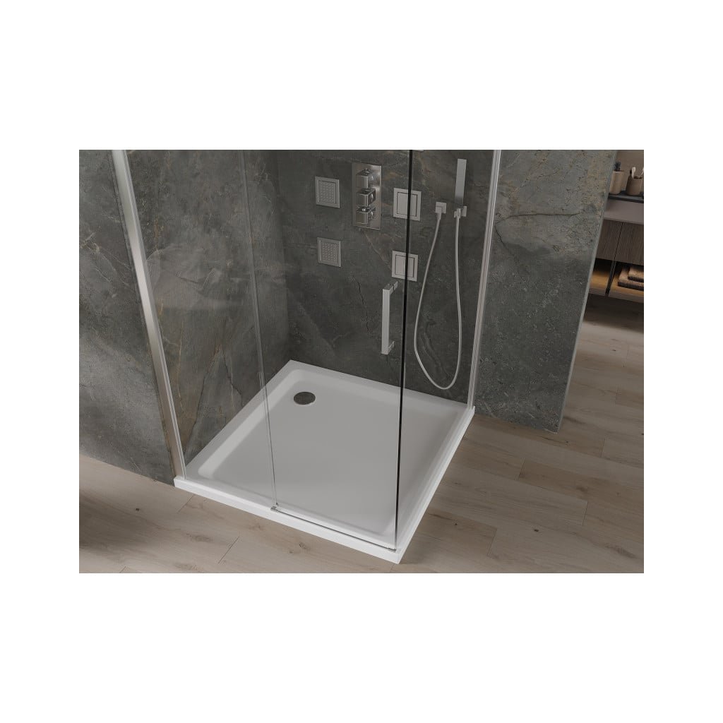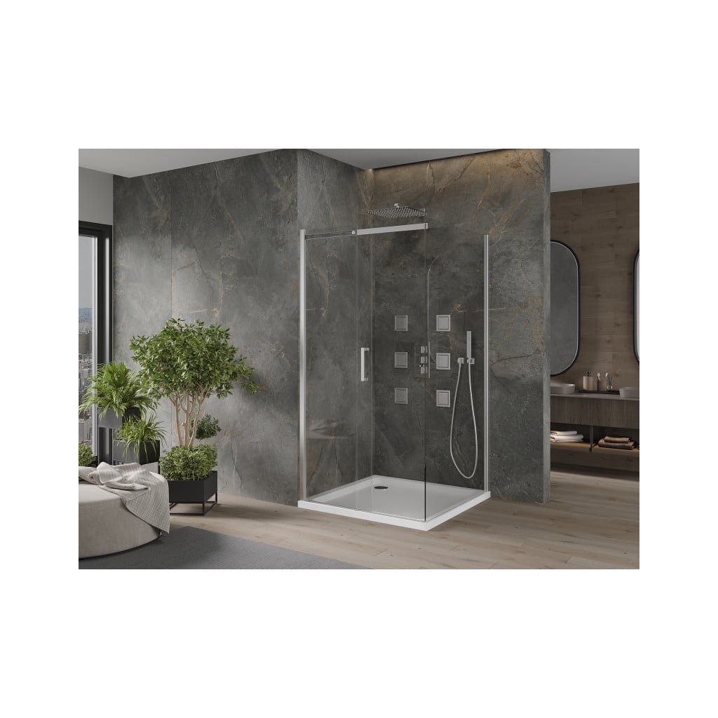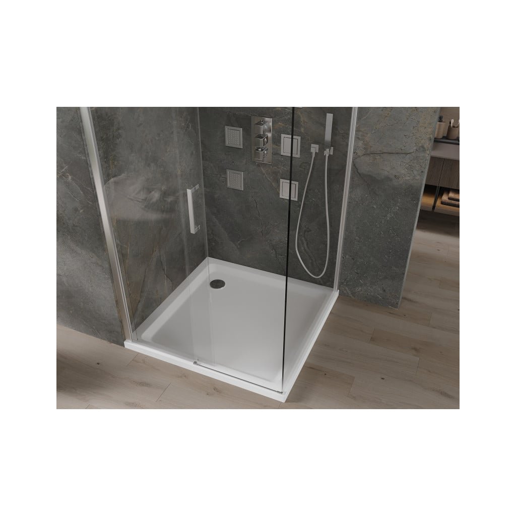 Mexen Omega posuvný sprchový kout 100 x 100 cm, chromový profil, čiré sklo + Slim sprchová vanička, 825-100-100-01-00-4010