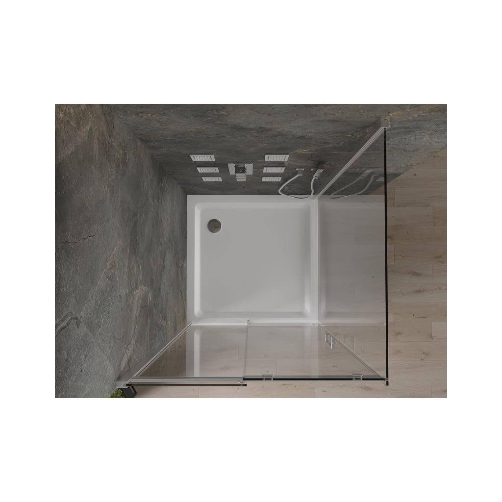 Mexen Omega posuvný sprchový kout 100 x 100 cm, průhledný, chrom + plochá sprchová vanička-825-100-100-01-00-4010