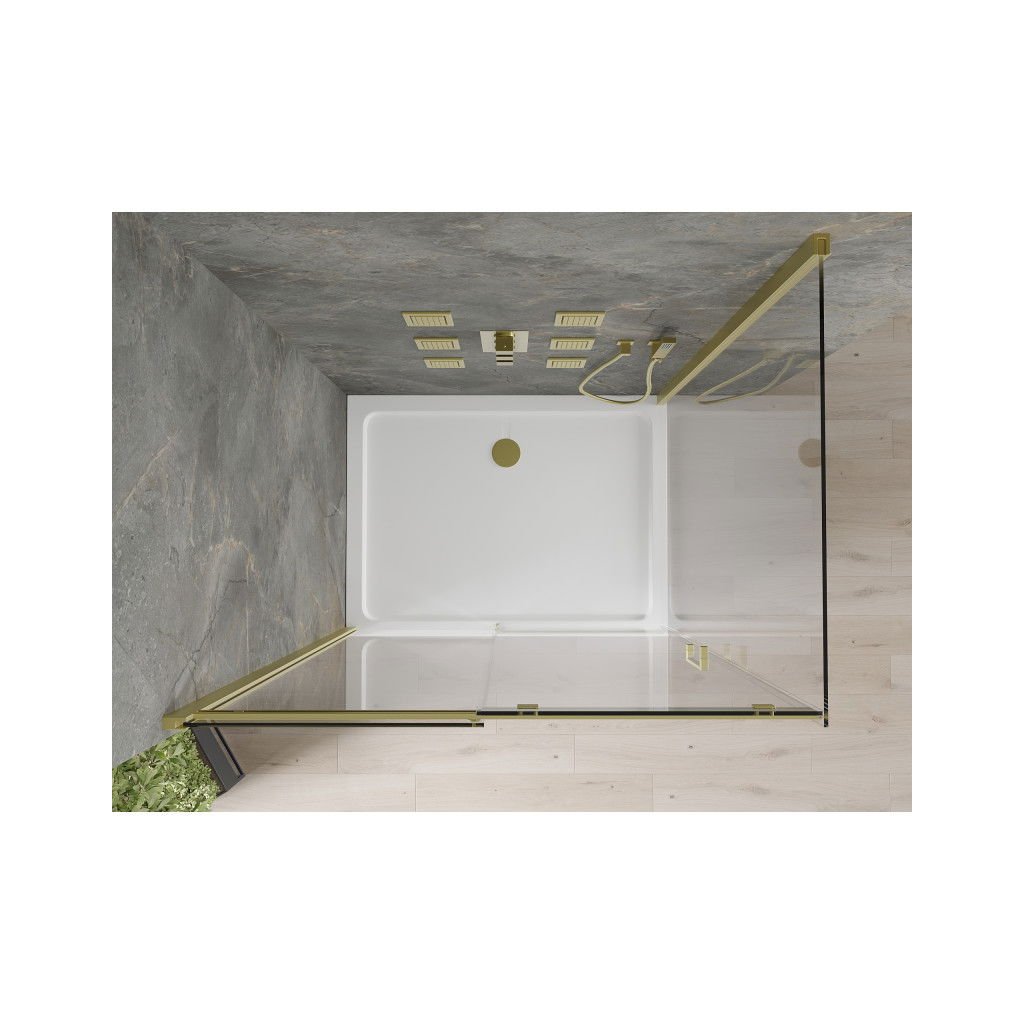 Mexen Omega posuvný sprchový kout 110 x 100 cm, 8mm sklo, zlatý profil-čiré sklo + slim sprchová vanička 5cm, 825-110-100-50-00-4010