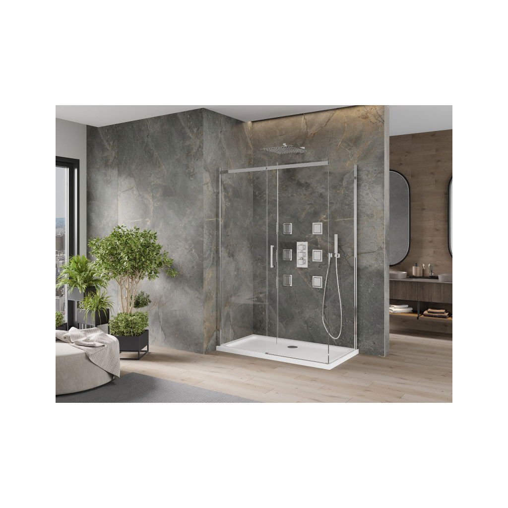 Mexen Omega sprchový kout s posuvnými dveřmi 140 x 70 cm, 8mm čiré sklo-chromový profil + sprchová vanička, 825-140-070-01-00-4010
