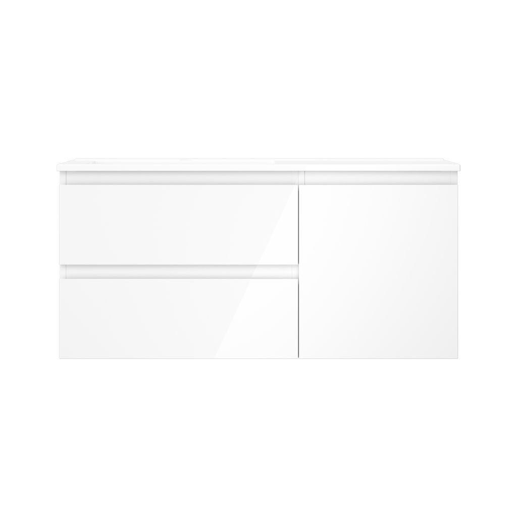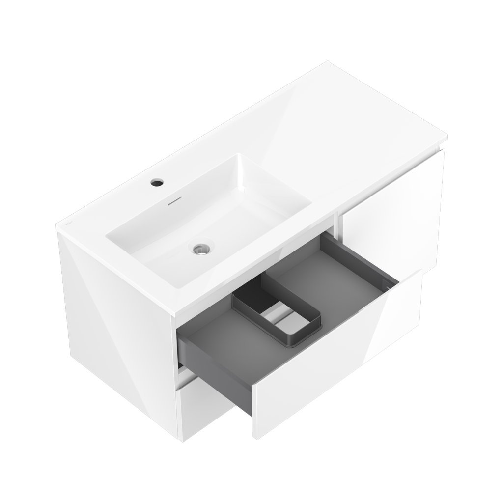 Mexen Orio, koupelnová skříňka 100 cm s levým umyvadlem Otis, 2S, 1D, bílá lesklá, 91A13-10047-3-BBFFF00-W18L00