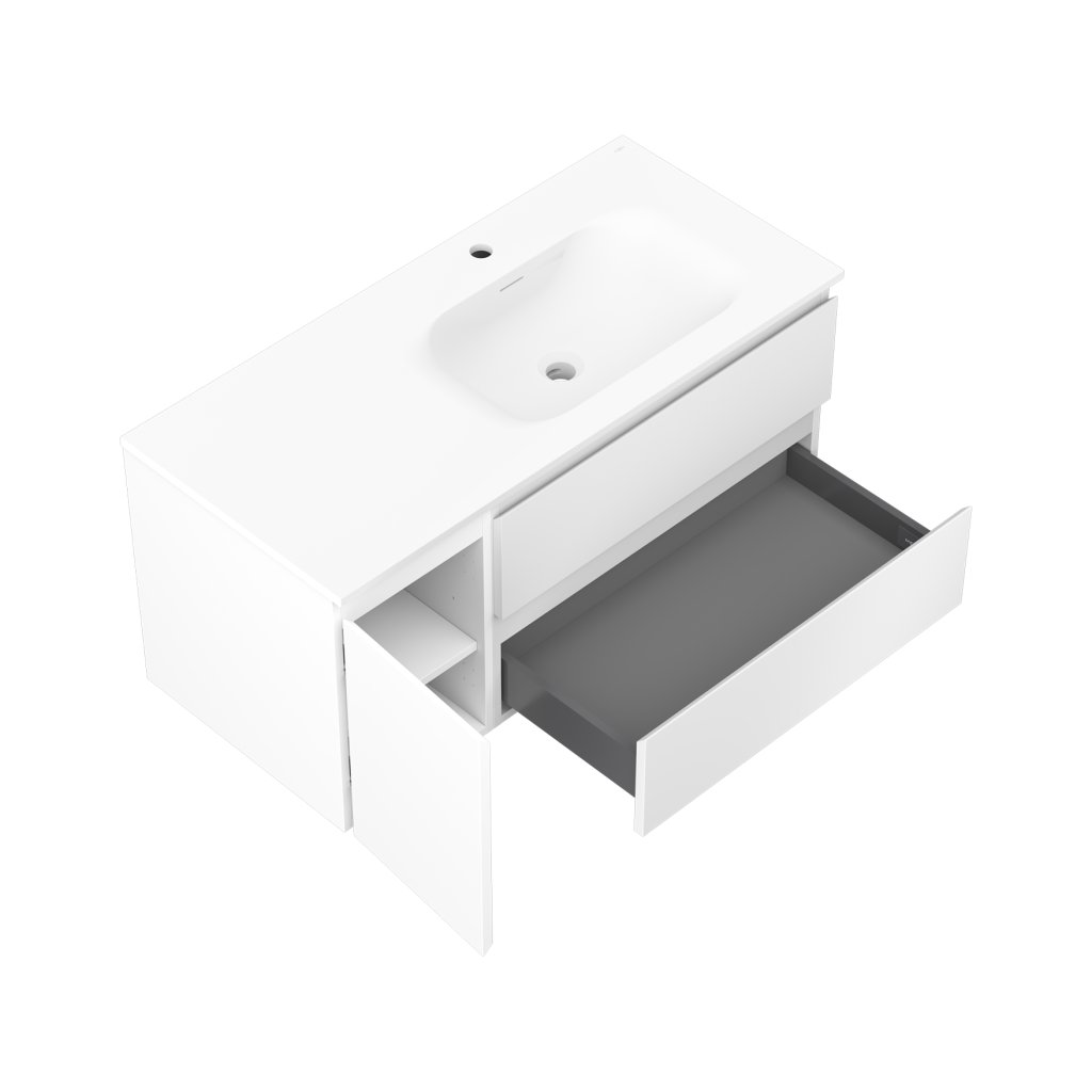 Mexen Orio, koupelnová skříňka 100 cm s pravým umyvadlem Vela, 2S, 1D, bílá matná, 91A13-10047-3-BBFFFF01-W23P01