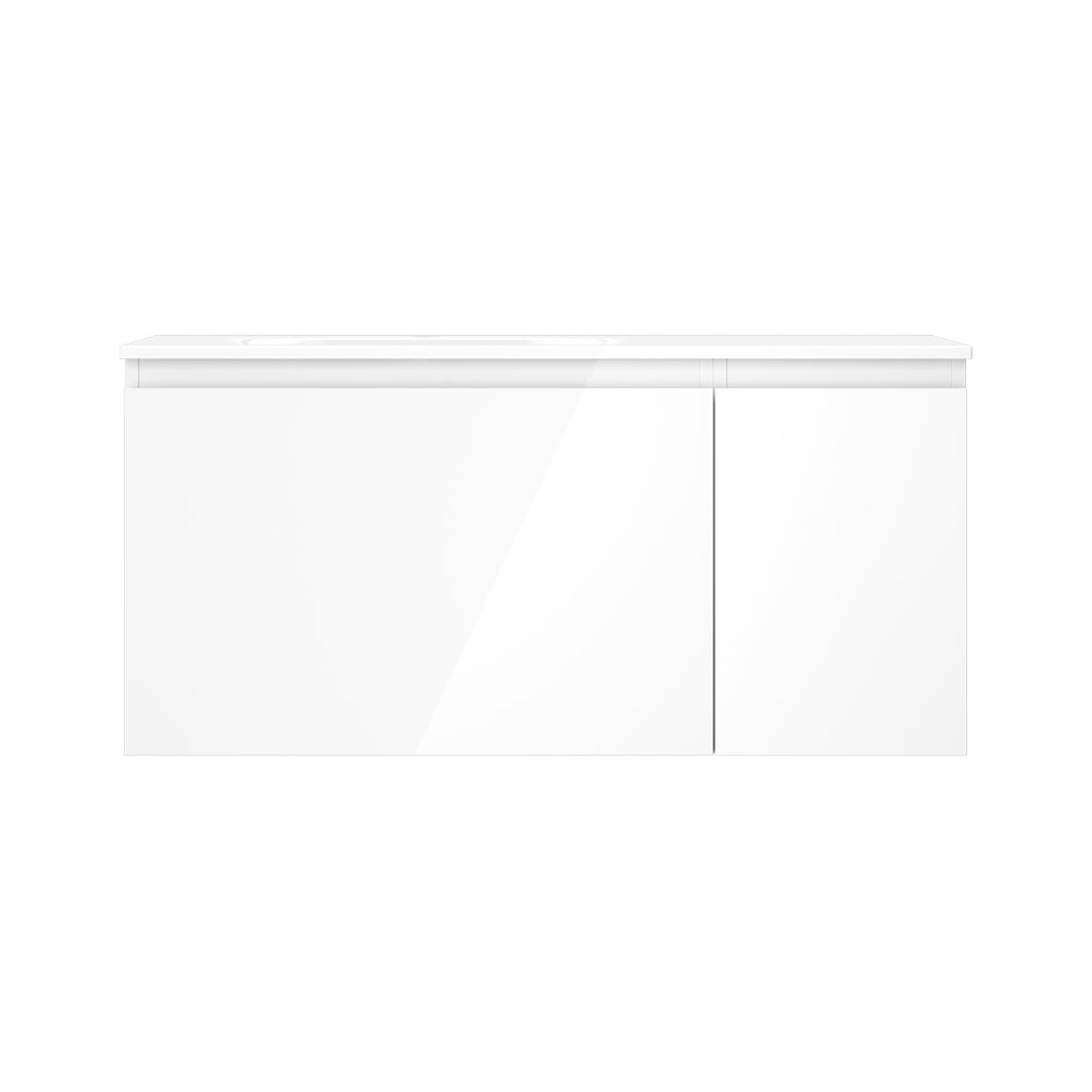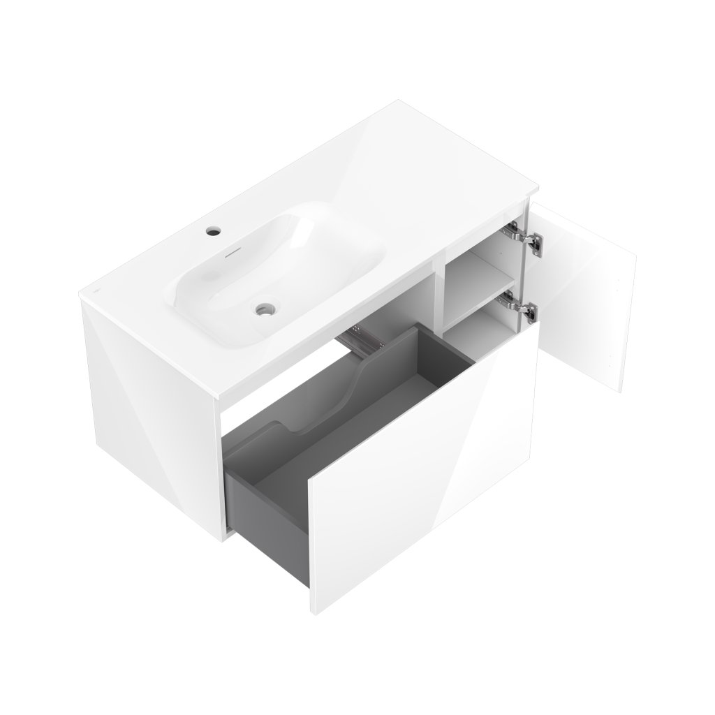 Mexen Orio, koupelnová skříňka 100 cm s umyvadlem Vela vlevo, 1S, 1D, bílá lesklá, 91A13-10047-3-BBFF00-W23L00
