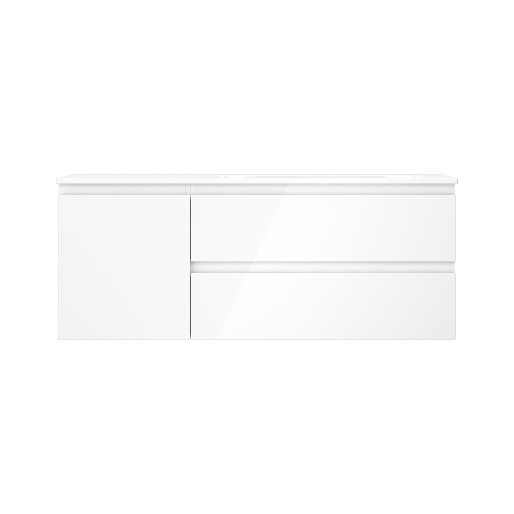 Mexen Orio, koupelnová skříňka 120 cm s pravým umyvadlem Vela, 2S, 1D, bílá lesklá, 91A13-12047-3-BBFFF00-W23P00