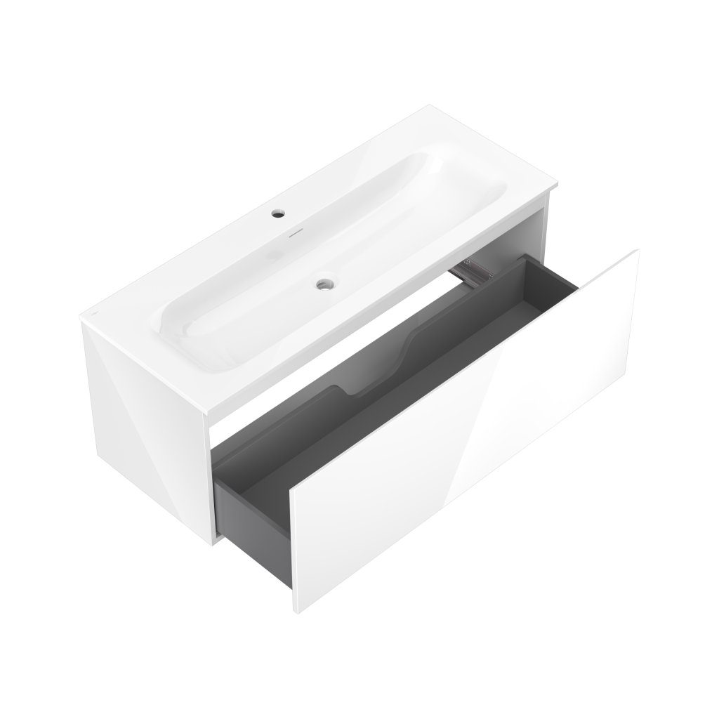 Mexen Orio, koupelnová skříňka 120 cm s umyvadlem Vela, 1 zásuvka, bílá lesklá, 91A10-12047-1-BF00-W23M00