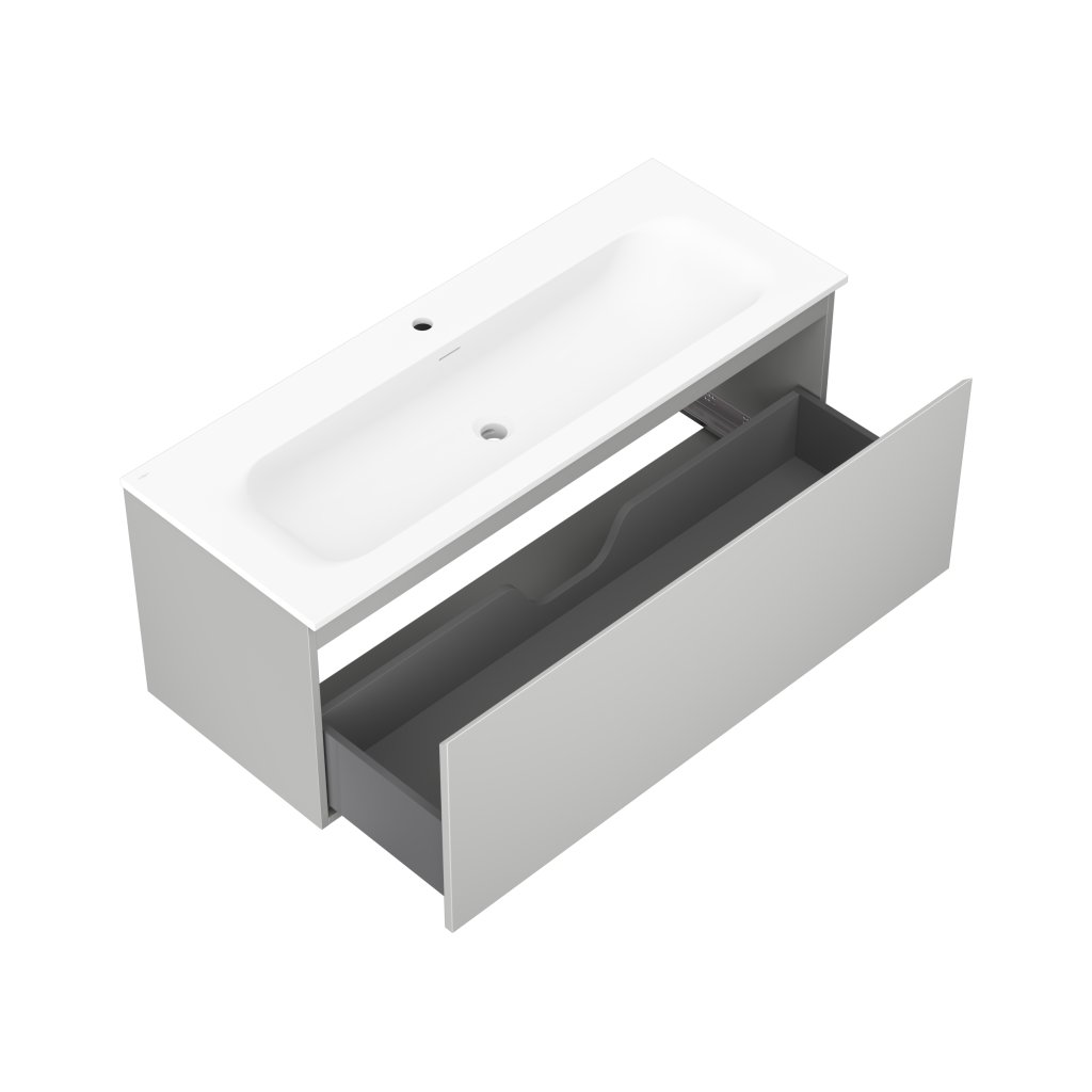 Mexen Orio, koupelnová skříňka 120 cm s umyvadlem Vela, 1 zásuvka, šedá matná/bílá matná, 91A10-12047-1-BF62-W23M01