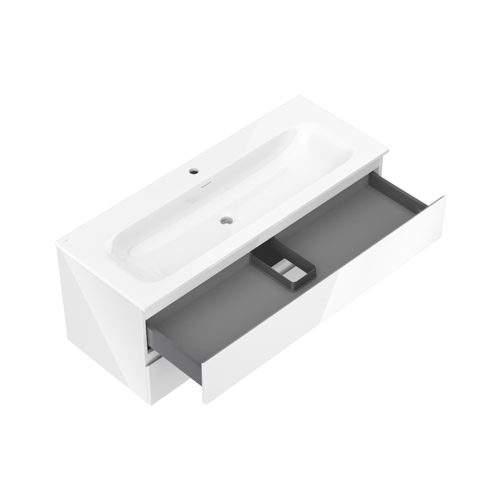 Mexen Orio, koupelnová skříňka 120 cm s umyvadlem Vela, 2 zásuvky, bílá lesklá, 91A10-12047-2-BFF00-W23M00