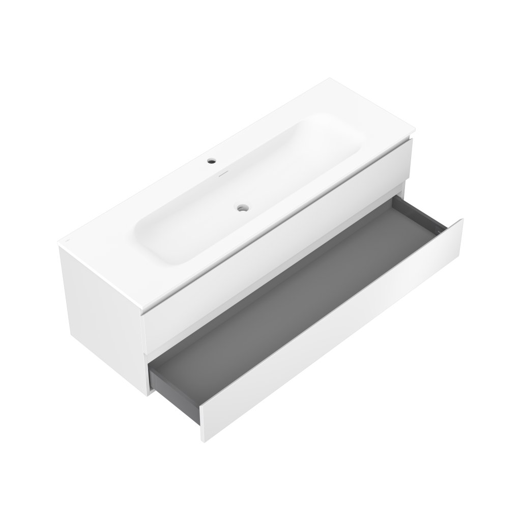 Mexen Orio, koupelnová skříňka 140 cm s umyvadlem Vela, 2 zásuvky, bílá matná, 91A10-14047-2-BFF01-W23M01