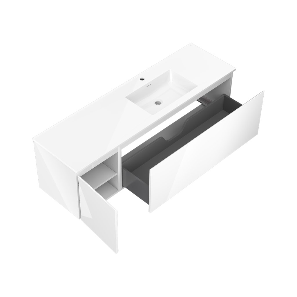 Mexen Orio, koupelnová skříňka 160 cm s pravým umyvadlem Otis, 1S, 1D, bílá lesklá, 91A13-16047-3-BBFF00-W18P00