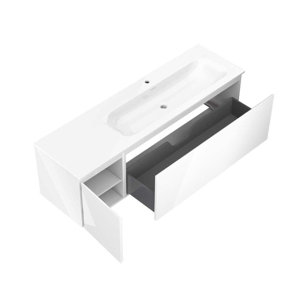 Mexen Orio, koupelnová skříňka 160 cm s pravým umyvadlem Vela, 1S, 1D, bílá lesklá, 91A13-16047-3-BBFF00-W23P00