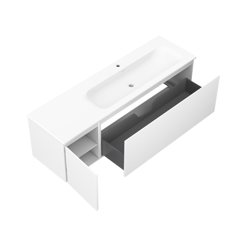 Mexen Orio, koupelnová skříňka 160 cm s pravým umyvadlem Vela, 1S, 1D, bílá matná, 91A13-16047-3-BBFF01-W23P01