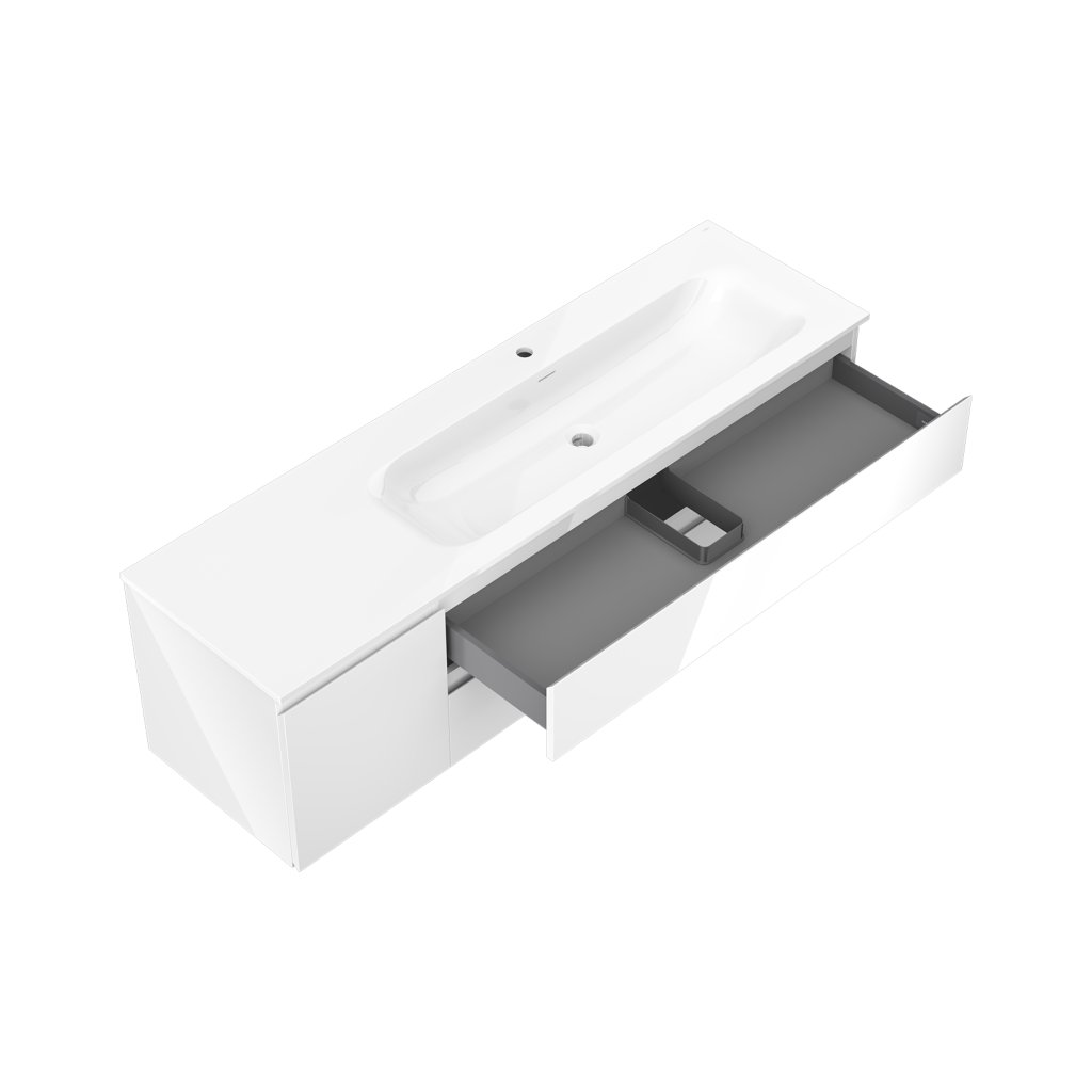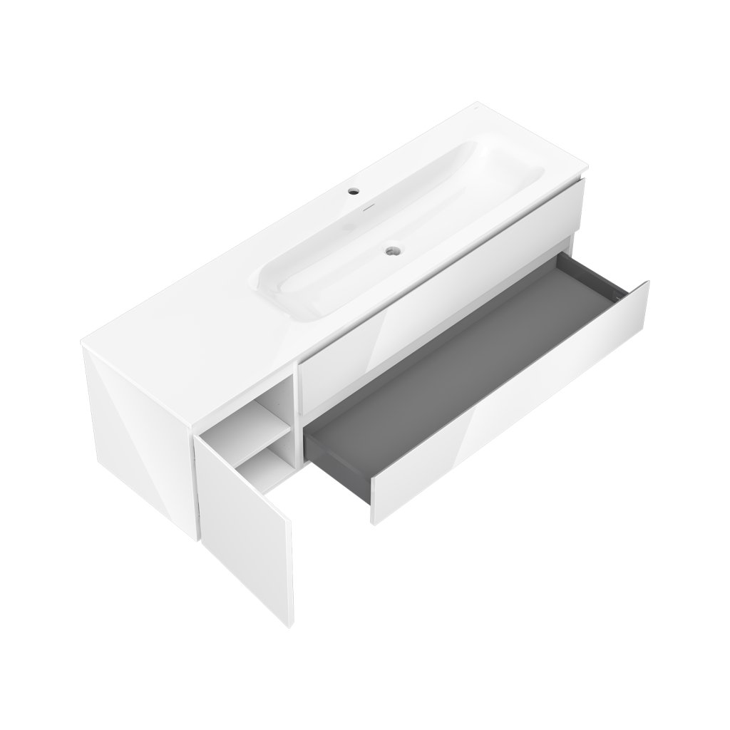 Mexen Orio, koupelnová skříňka 160 cm s pravým umyvadlem Vela, 2S, 1D, bílá lesklá, 91A13-16047-3-BBFFF00-W23P00