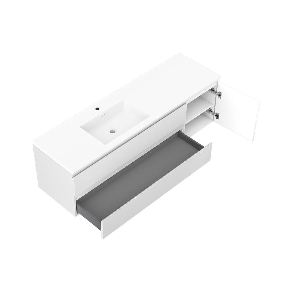 Mexen Orio, koupelnová skříňka 160 cm s umyvadlem Otis vlevo, 2S, 1D, bílá matná, 91A13-16047-3-BBFFF01-W18L01