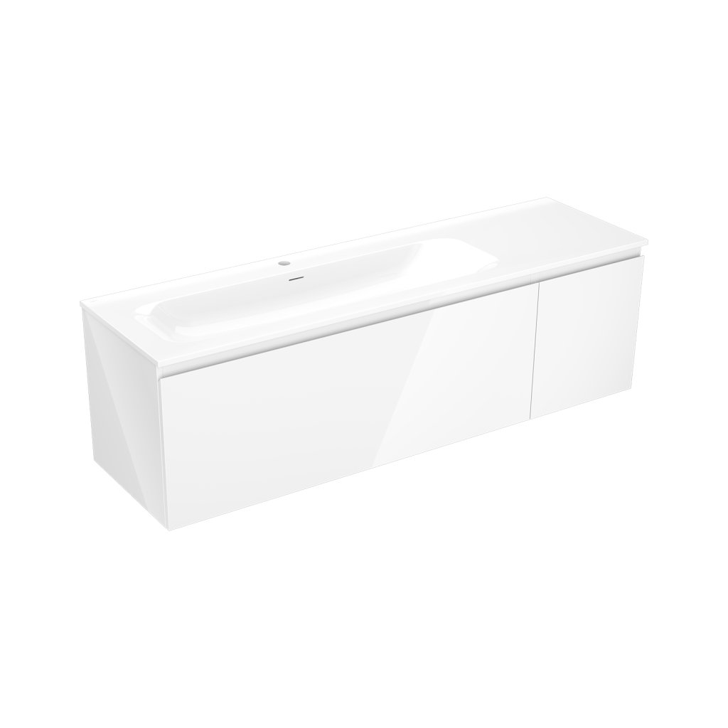 Mexen Orio, koupelnová skříňka 160 cm s umyvadlem Vela vlevo, 1S, 1D, bílá lesklá, 91A13-16047-3-BBFF00-W23L00
