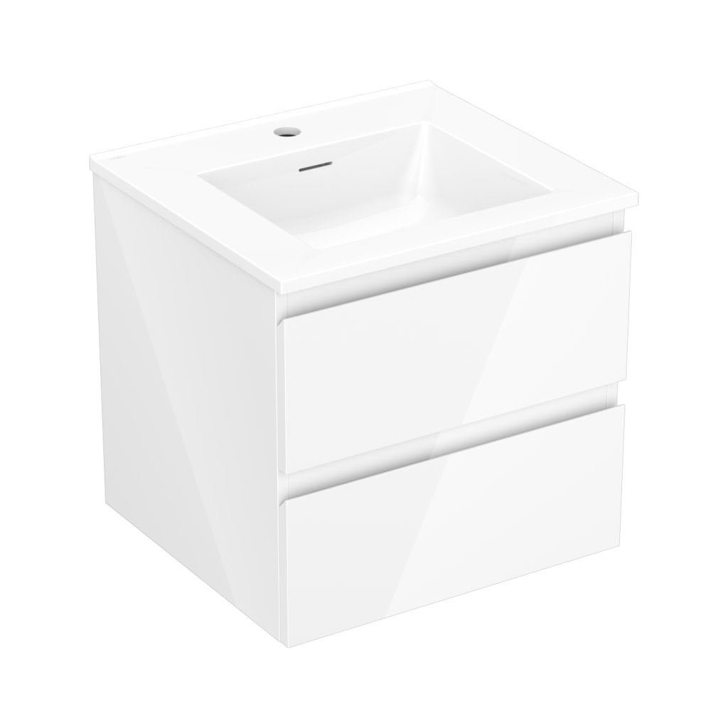 Mexen Orio, koupelnová skříňka 50 cm s umyvadlem Otis, 2 zásuvky, bílá lesklá, 91A10-05047-2-BFF00-W18M00
