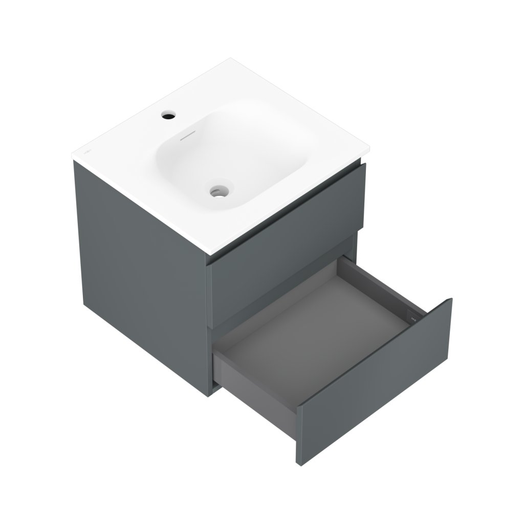 Mexen Orio, koupelnová skříňka 50 cm s umyvadlem Vela, 2 zásuvky, grafitová matná/bílá matná, 91A10-05047-2-BFF66-W23M01