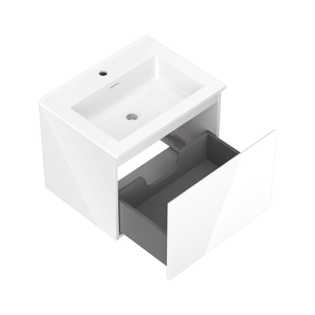 Mexen Orio, koupelnová skříňka 60 cm s umyvadlem Otis, 1 zásuvka, bílá lesklá, 91A10-06047-1-BF00-W18M00