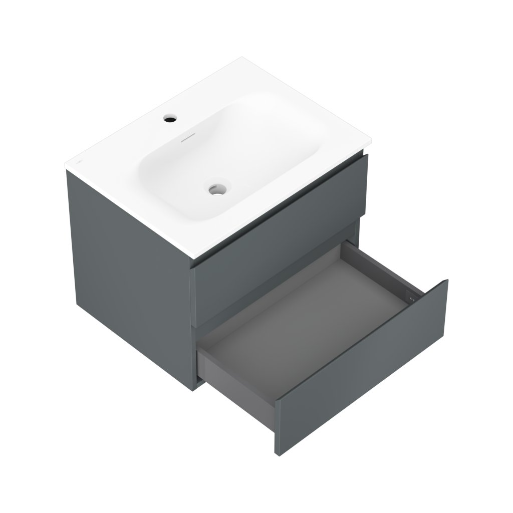 Mexen Orio, koupelnová skříňka 60 cm s umyvadlem Vela, 2 zásuvky, grafitová matná/bílá matná, 91A10-06047-2-BFF66-W23M01