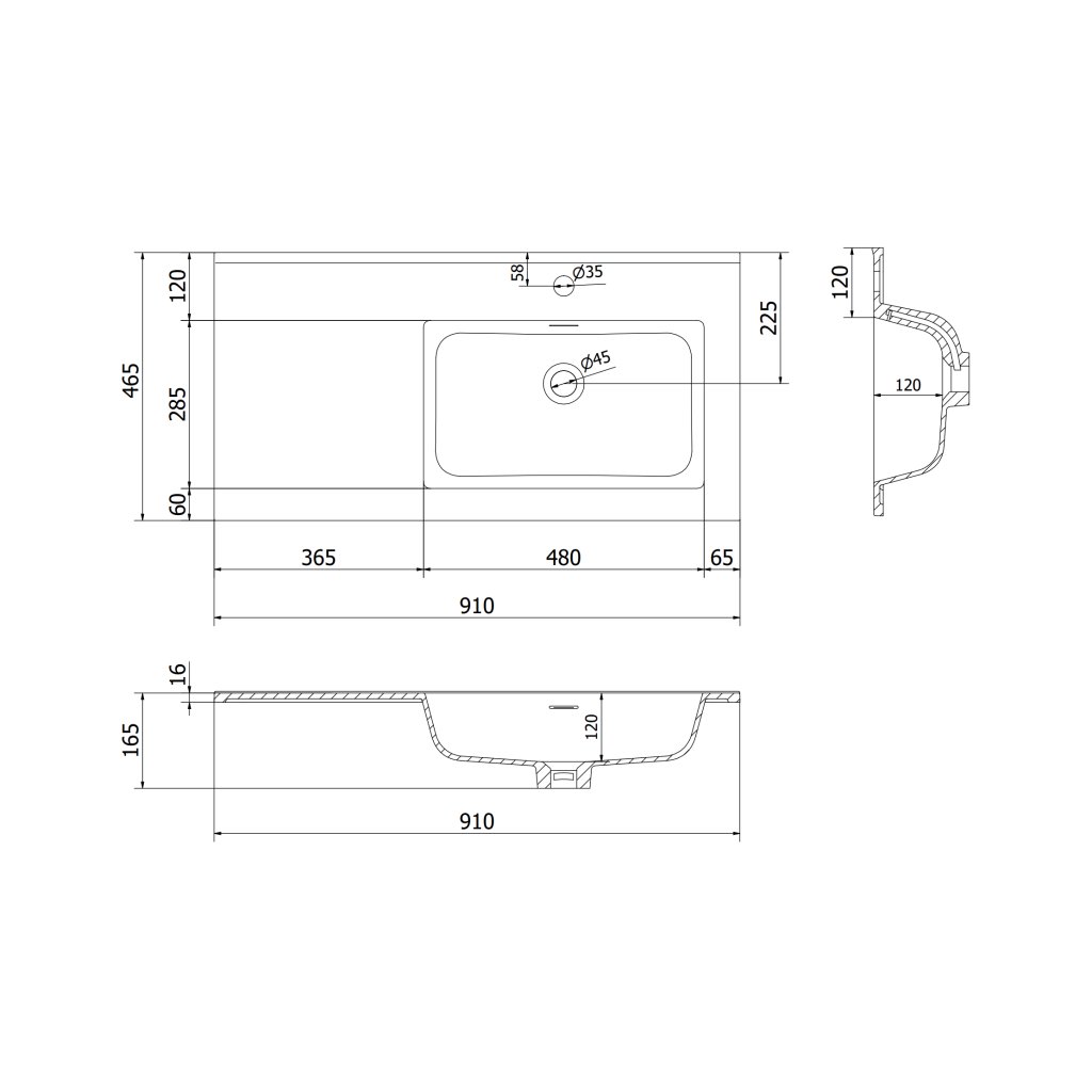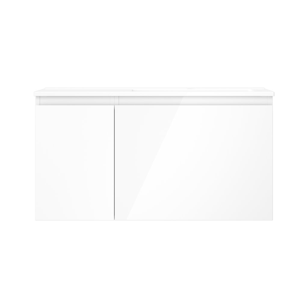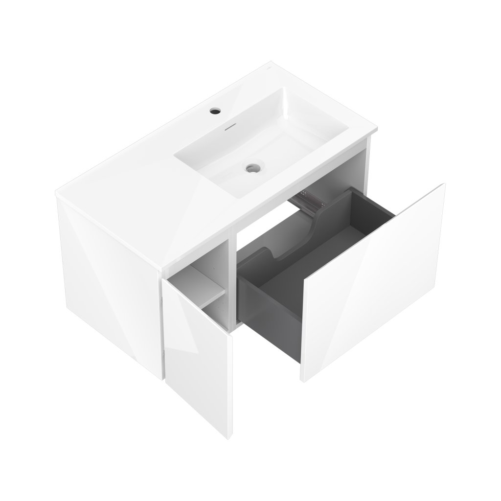 Mexen Orio, koupelnová skříňka 90 cm s pravým umyvadlem Otis, 1S, 1D, bílá lesklá, 91A13-09047-3-BBFF00-W18P00