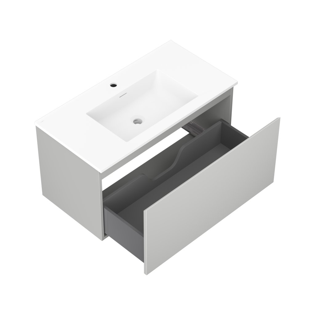 Mexen Orio, koupelnová skříňka 90 cm s umyvadlem Otis, 1 zásuvka, šedá matná/bílá matná, 91A10-09047-1-BF62-W18M01