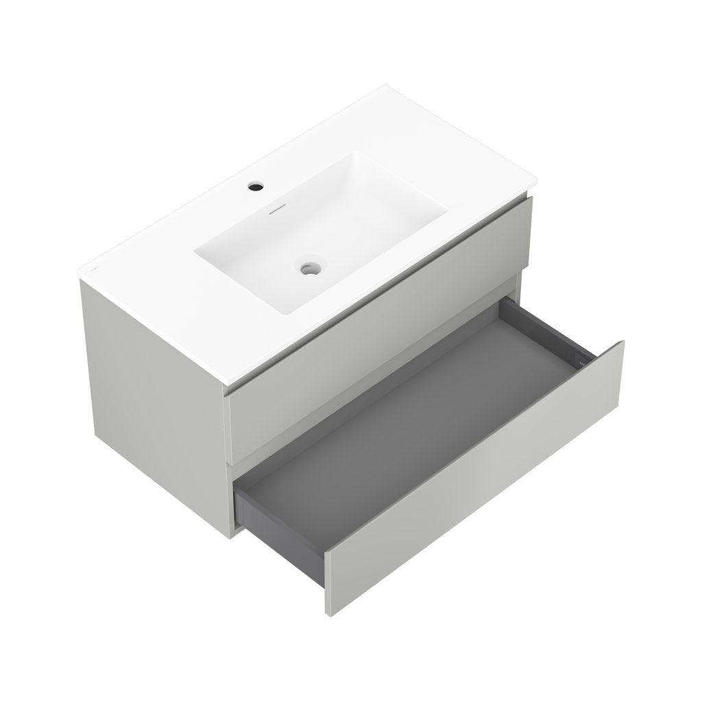Mexen Orio, koupelnová skříňka 90 cm s umyvadlem Otis, 2 zásuvky, šedá matná/bílá matná, 91A10-09047-2-BFF62-W18M01