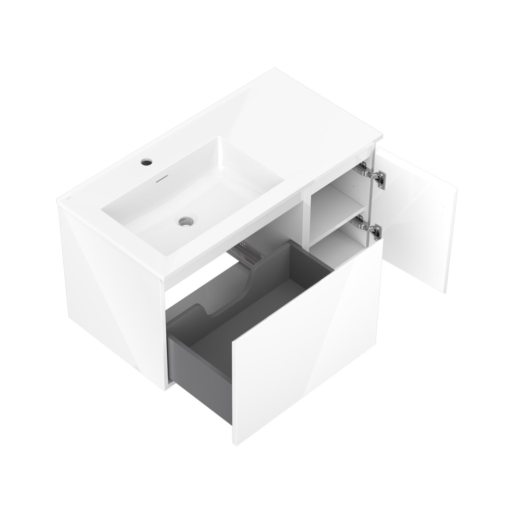 Mexen Orio, koupelnová skříňka 90 cm s umyvadlem Otis levá, 1S, 1D, bílá lesklá, 91A13-09047-3-BBFF00-W18L00