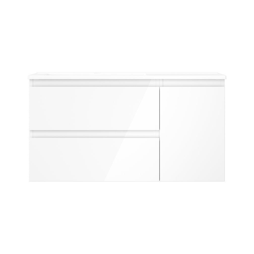 Mexen Orio, koupelnová skříňka 90 cm s umyvadlem Otis vlevo, 2S, 1D, bílá lesklá, 91A13-09047-3-BBFFF00-W18L00
