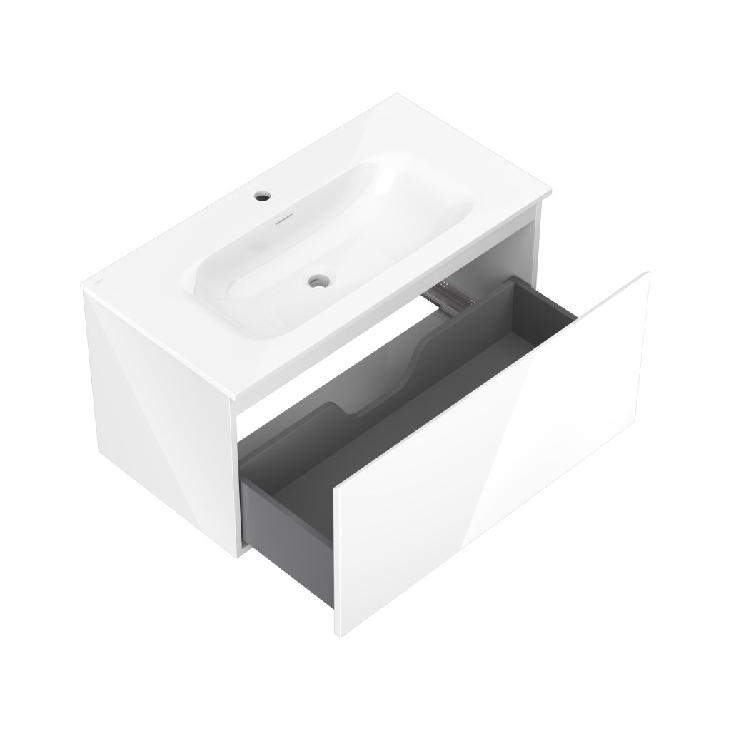 Mexen Orio, koupelnová skříňka 90 cm s umyvadlem Vela, 1 zásuvka, bílá lesklá, 91A10-09047-1-BF00-W23M00