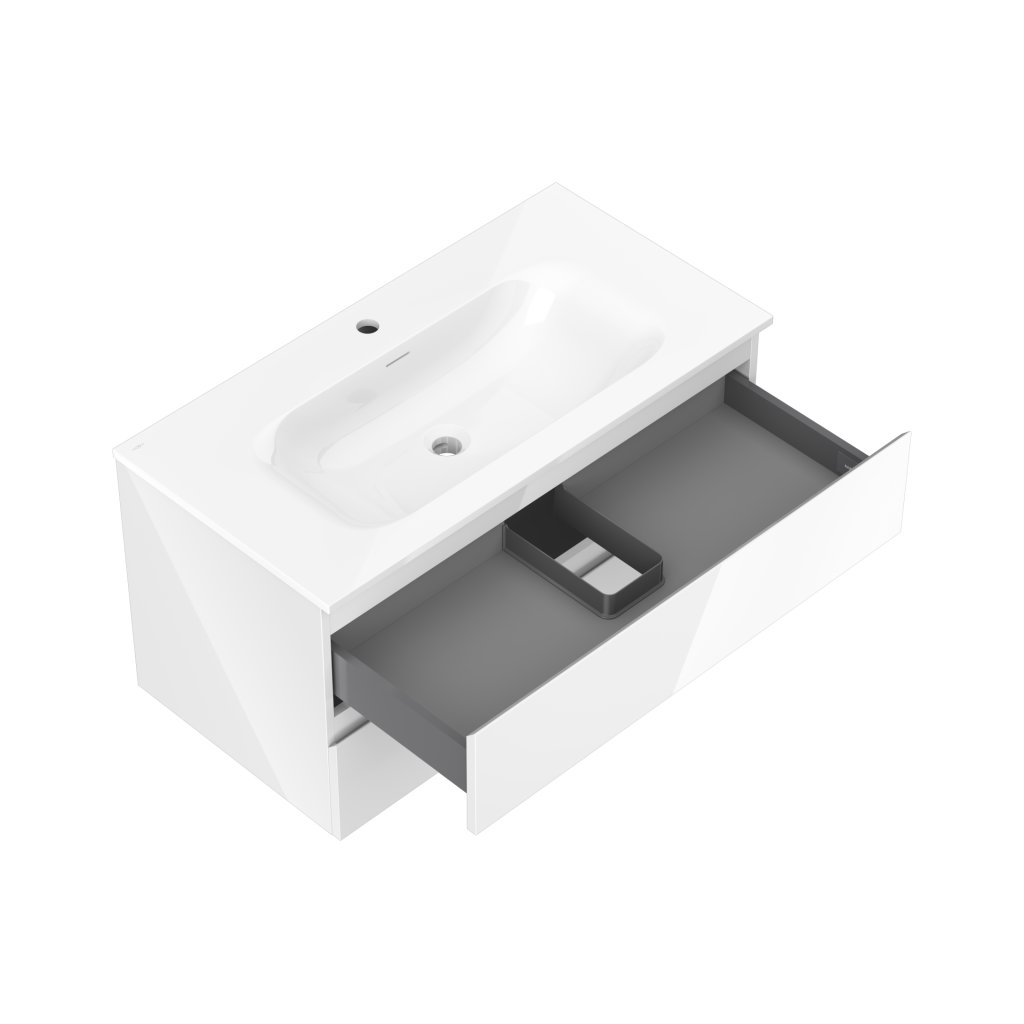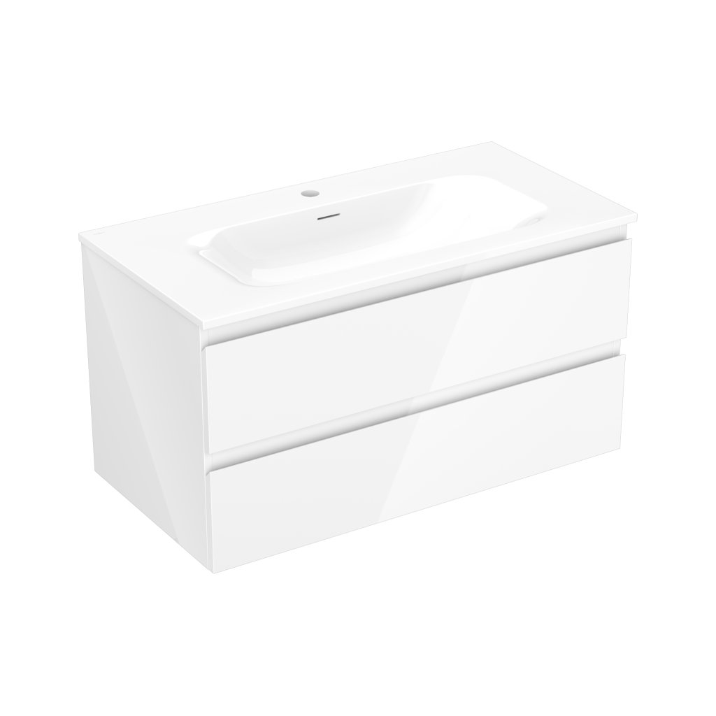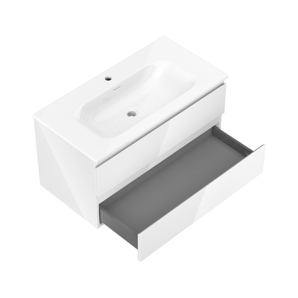 Mexen Orio, koupelnová skříňka 90 cm s umyvadlem Vela, 2 zásuvky, bílá lesklá, 91A10-09047-2-BFF00-W23M00