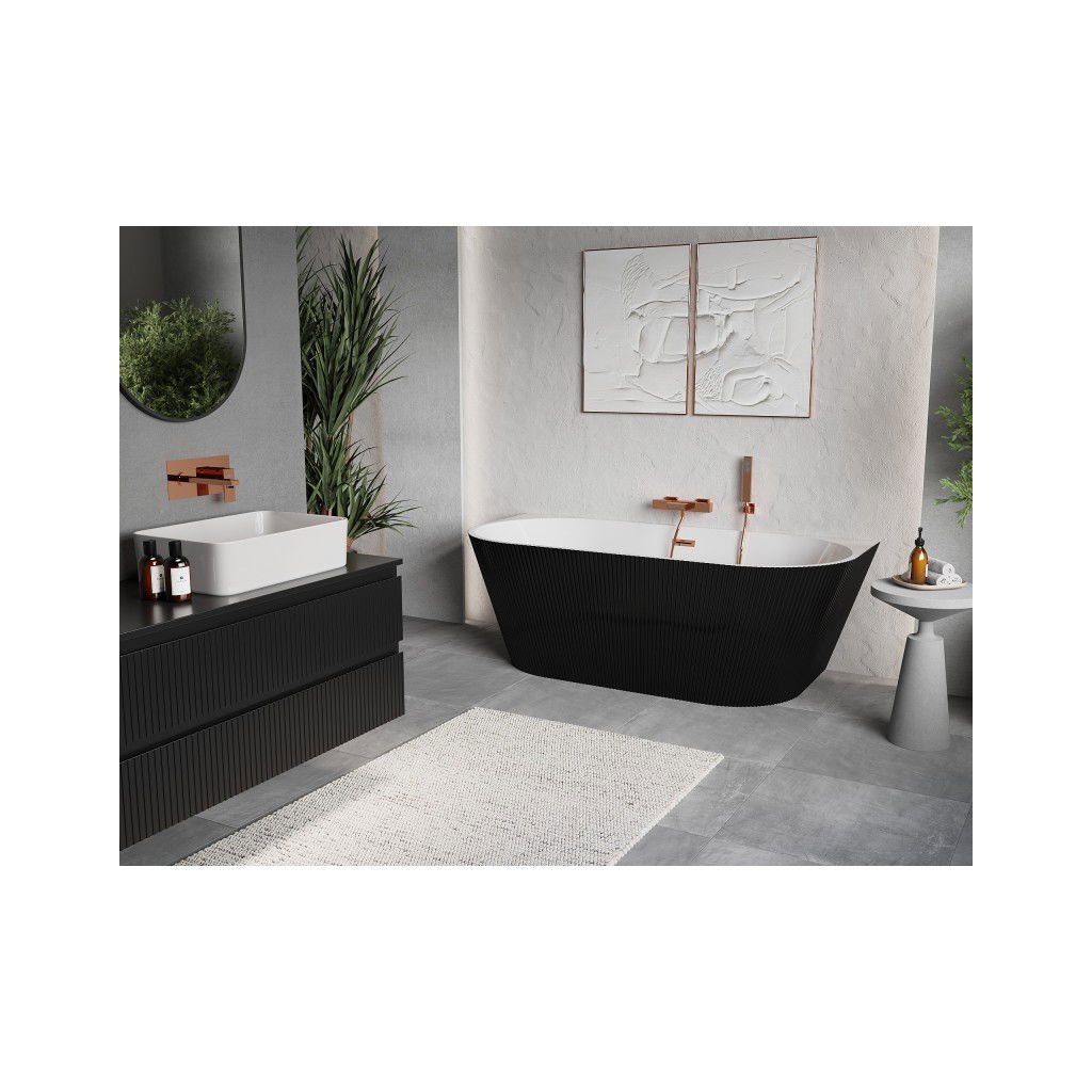 Mexen Oris, volně stojící rýhovaná vana 150 x 75 cm, bílá-černá, růžové zlato přepad, 52871507575-60