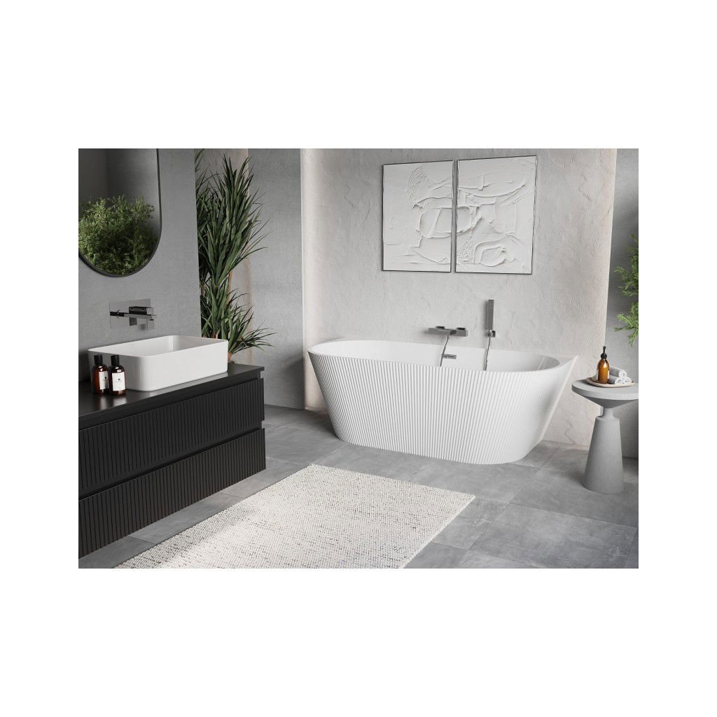 Mexen Oris, volně stojící rýhovaná vana 150 x 75 cm, bílá lesklá, chromový přepad, 52871507500-01